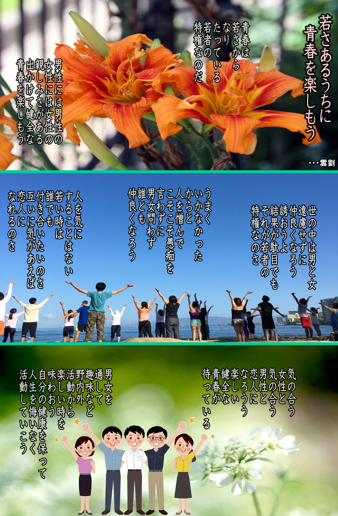 ・・・信濃 ◆過ぎ去った青春は二度と戻ってこない 悔いがないように青春を闊歩しよう ・・・トニー野中[世界の大富豪、2000人が教えてくれたこと] ◆「幸せな結婚ができるかどうか」のチェックテスト ……こんな相手なら、結婚しなさい! 幸福な成功者である1人の女性の、幸せな結婚生活を覗いてみましょう。彼女も夫と同様、事業家です。子育てに専念していた時期もありましたが、今、子どもたちは海外の全寮制の学校に通わせています。 時間ができたので、もともと興味のあった美容について学び、自宅にサロンを開きました。当初こそ夫の資産や人脈を借りましたが、今では口コミで人気も集まり、すでに著書も何冊かだしているとか。十分、自立できる収益を上げていますが、でも、だからと言ってそれで離婚するということは考えません。 それどころか夫のほうは、妻とタッグを組んで、さらに新しいビジネスを始められないかと考えています。すでに晩年を迎えているご夫婦ですが、夢はますます大きくなっています。こんなふうに、大富豪の妻には「自分でビジネスをしている」人が大勢います。もちろん、夫はその資金への援助はしますが、経営は任せています。 一面では妻でありながら、もう一面ではビジネスパートナーとして、対等な関係を認めているのです。不幸な成功者の夫婦になると、そうはなりません。「若くて美人だから」という理由で妻を選んだ成り上がりの社長は、数年もすると妻に飽きてしまって家に寄りつかなくなり、家庭崩壊を招きます。 「お金持ちだから」という理由で夫を選んだ女性は、夫のビジネスが危機を迎えても贅沢な生活が捨てられず、多額の借金を抱えていく。そして没落していく夫を見て、こんな人と結婚しなければよかった、私は不幸な女と嘆き、離婚します逆に、女性が大富豪の場合もしかりで、大富豪である妻の財産を目当てに男性が女性を選んだとして、幸せな家庭を築けるわけがありません。 いずれも「お金で買えない大切なもの」 の価値がわかっていないからです。お金に振り回されない 「人脈の自由」を、しっかりと人間関係の基盤に置くべきでしょう。 幸せな結婚ができるかどうか? 次の項目をチェックしてみましょう。 ◎チェック @婚約者が今の仕事(キャリア) をすべて捨ててゼロから やり直したいと言っている。それでもあなたは結婚しますか? ◎チェック A相手の尊敬できるところを3つ以上、すぐに言えますか? ◎チェック B相手の性格で自分と合うと思うものを3つ以上、挙げることができますか? ◎チェック C相手が50歳 (あるいはそれ以上) になったときの姿を想像してください。 それが現実化するとしても、あなたは結婚しますか? ◆青春を楽しもう 恥をかいてもかまわないではないか
