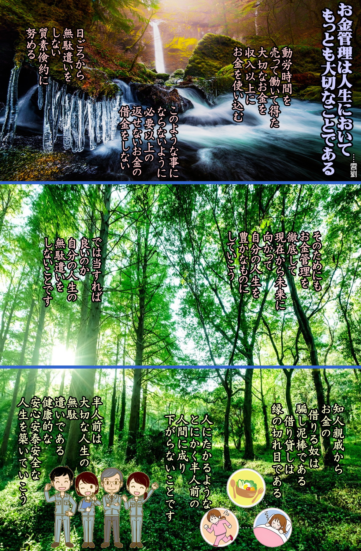 自分の善き人生を全うするにはお金が必要である。衣食住にもお金が必ず必要である。社会に出たなら働いてお金を得なければなりません。頂いた収入の範囲内で生活するように出来ればよいのだが、収入以上に使ってしまうバカがこの世に多く存在しているから消費者金融業が成り立っている
