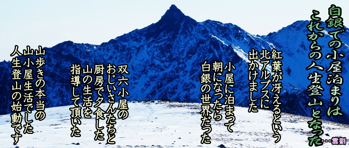 この季節外れの大雪で双六小屋付近で迷子の登山者が救助された。常念小屋付近では4人が亡くなられた。私にとっても未熟な登山で過酷な経験となった。