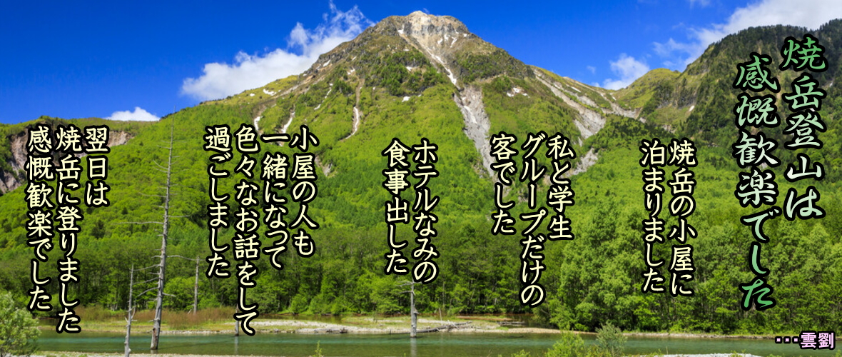 焼岳小屋に泊まった学生諸君と同じ部屋で過ごした
