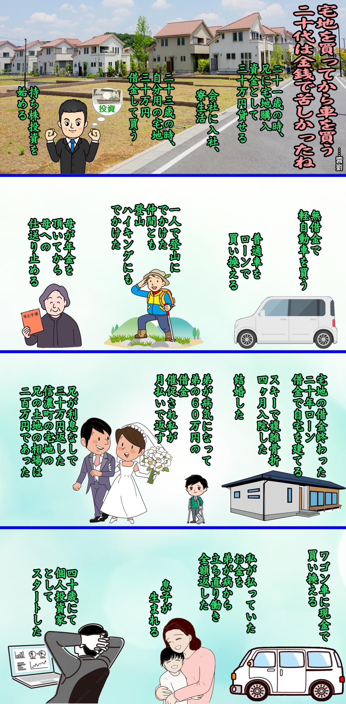 ◆宅地を買ってから車を買う 二十代は金銭で苦しかったね