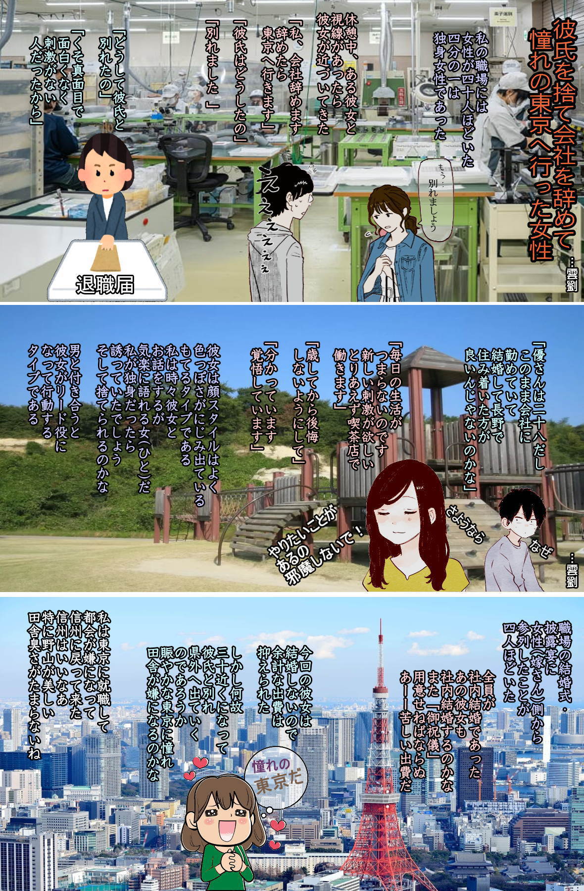 負け犬だ勝ち犬だとか言っている人たちというのは、所詮恵まれて、学歴もあり、家族も自分にお金を投資してくれて、親も勝ち犬だ負け犬だと心配してくれるような人ですから、人生の強者です。そういう人たちはどんなふうにしたって、生きていけるのです。ですから、彼女たちは好きなように生きればよいのだと思いますが、問題はそういうカテゴリーにない人たちです。そちらのほうがマジョリティ(多数」、「多数派」を意味)なのですから、そういう人たちが、間違った方向に導かれることを心配してしまいます。