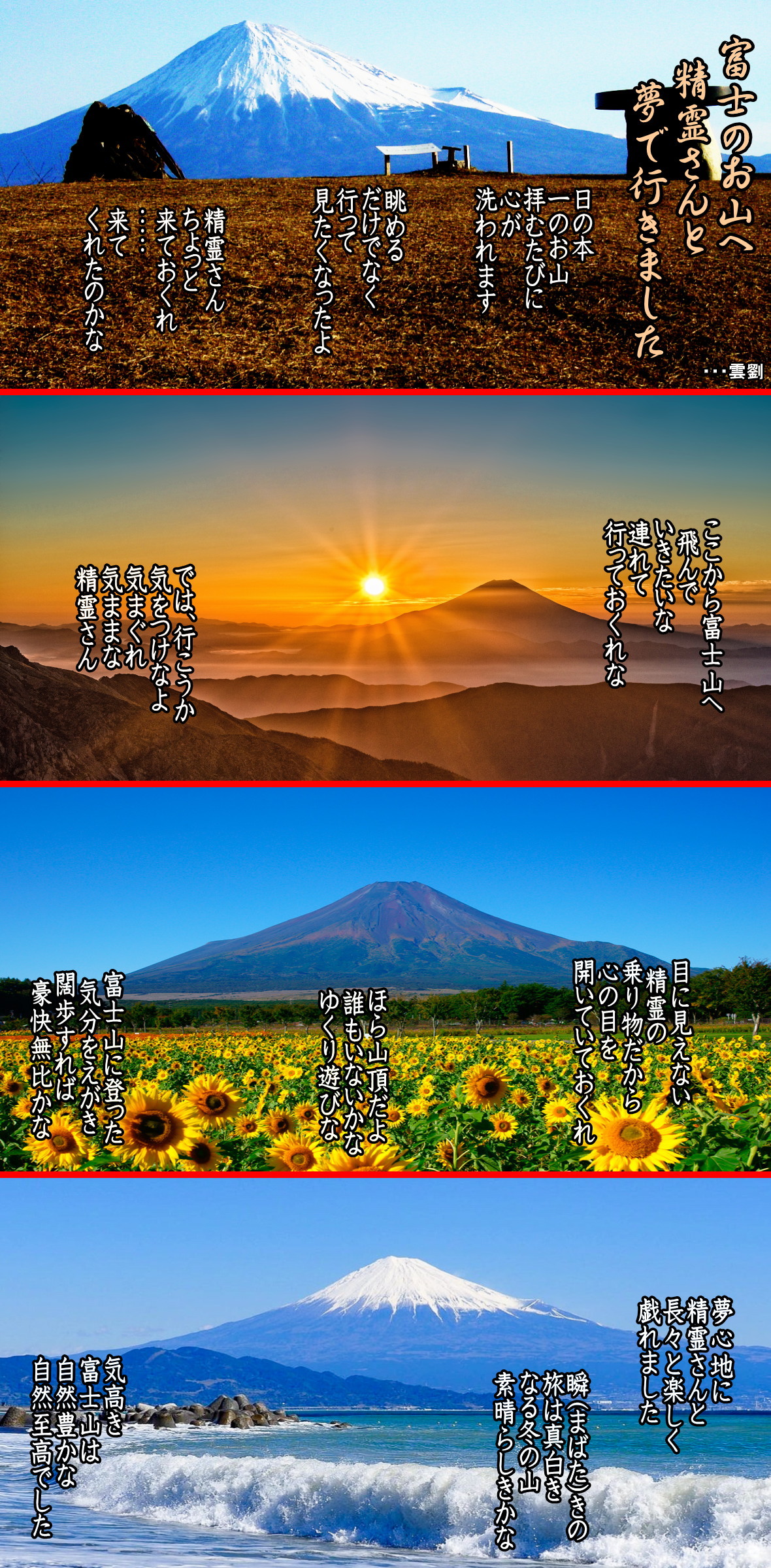 「駿河の富士と一里塚(あまりに違いすぎていて、くらべものにならないことのたとえ)」、「富士山がかさをかぶれば雨(笠雲ができると雨になりやすい)」など、名峰・富士にまつわる慣用句やことわざがいくつか存在する。なかでも最も有名なのは、「一富士、二鷹、三茄子」 に違いない。初夢に見ると縁起がいいとされるものだ。富士はもちろん、日本の最高峰である富士山をさす。確かに富士山が初夢に出てきたら、その年はいいことがありそうだ。