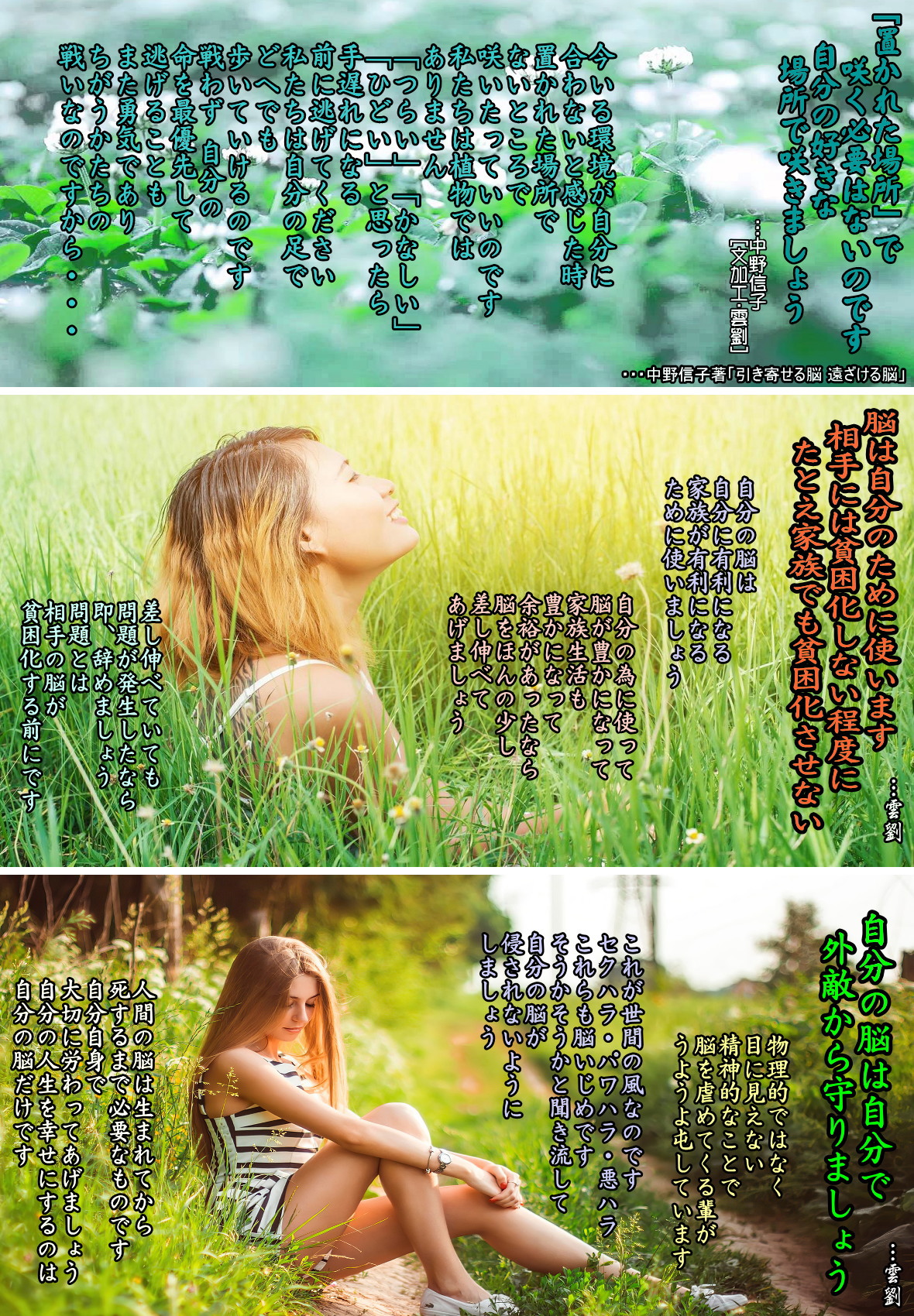 ・・・新井満「なぜ生まれてきたのか?」『自由訳 般若心経』22 ◆あなたは奇蹟のような存在 「生まれる意味があったからこそ、あなたは生まれてきたのだ。そのことを思うと、不思議な気分になるね…。そうなのだ。今、生きているあなたとは、奇蹟のような存在であると言っても、過言ではない。まことにまことに、ありがたい存在でもあるのだよ。
