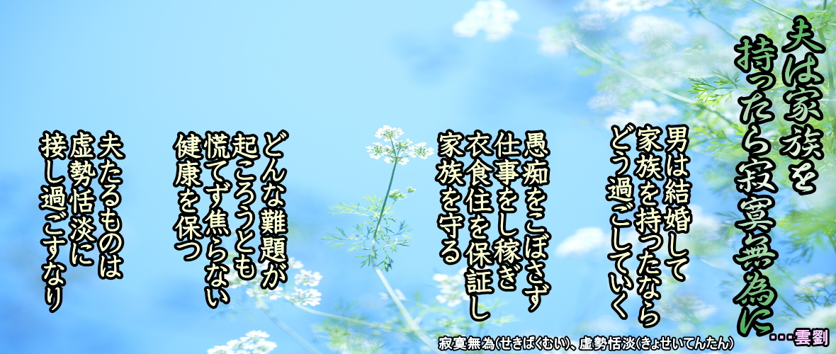 ◆夫は家族を持ったら寂寞無為に