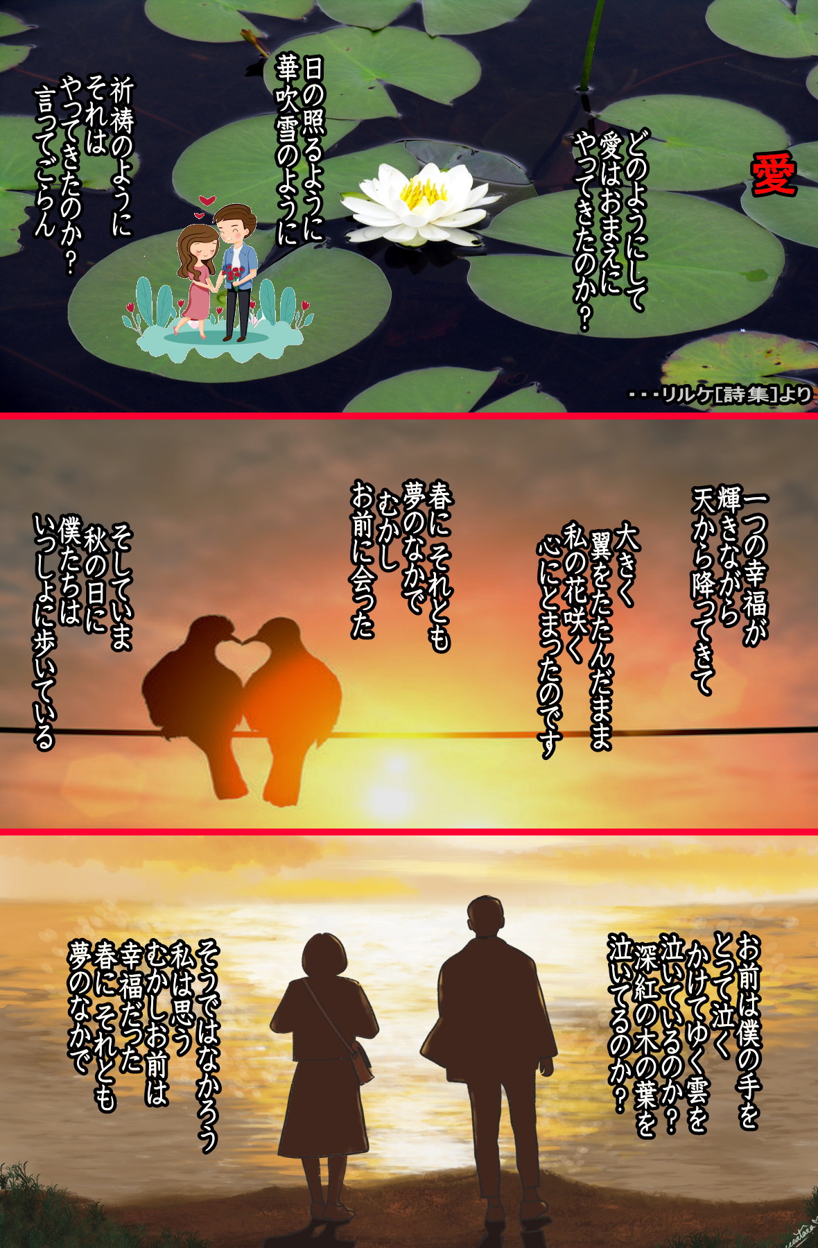 俳句で堅苦しく寂しそうな松尾芭蕉・庶民的な小林一茶の俳句が気にいっている。短歌はこれといった気にいった作家はいない。 自由詩では一番好きな詩集は「世界の詩集・リルケ詩集」・・・訳者・富士川秀郎、昭和無42年10月10発行である。私が富士通に入った年の暮れに買った詩集であった。リルケ詩集で他のも買って読んだが、富士川秀郎訳の詩集が一番読んでいても気持ちが良い詩集であった。これからも老いてボケなければ拙い詩歌を詠み続けてHPなどに載せて人生を過ごしていきたいと思っている。
