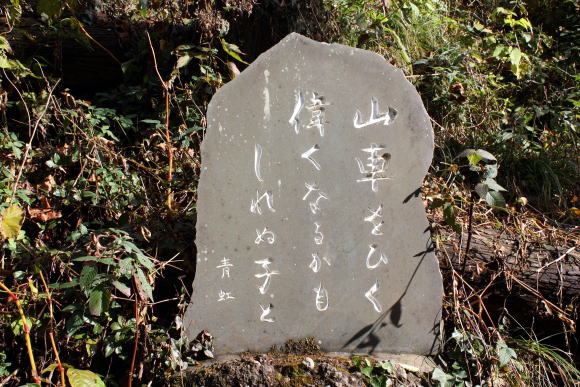 ■人生、古今未来に詩歌を詠む 名言・名句・訓なども詠む 子供の頃から野山に魅せられ、その素晴らしさを知人などに伝えようとしても上手く語れなくもじもじした経験が多かった。特に私は喋るのが苦手な子供であった。低学年の頃に仁之倉にきた人が「小林一茶の母の家はどこですか」聞かれたことがあった。はてな小林一茶とは?。春に躑躅が咲く小丸山公園には一茶の石碑があることは知っていたが、まだまだ世間知らずで何のことか分からなかった。学校の図書館でやっと知ったのである。五七五に言葉を区切って詠む方法に、そんなに興味は湧かなかった。中学を卒業して東京の都会ジャングルの下で生活して本屋さんに行って時々ただ読みをして俳句などに興味を持つようになった。俳句も良いが、自由に文字を綴る詩の方が良いかなとも思うようにもなった。