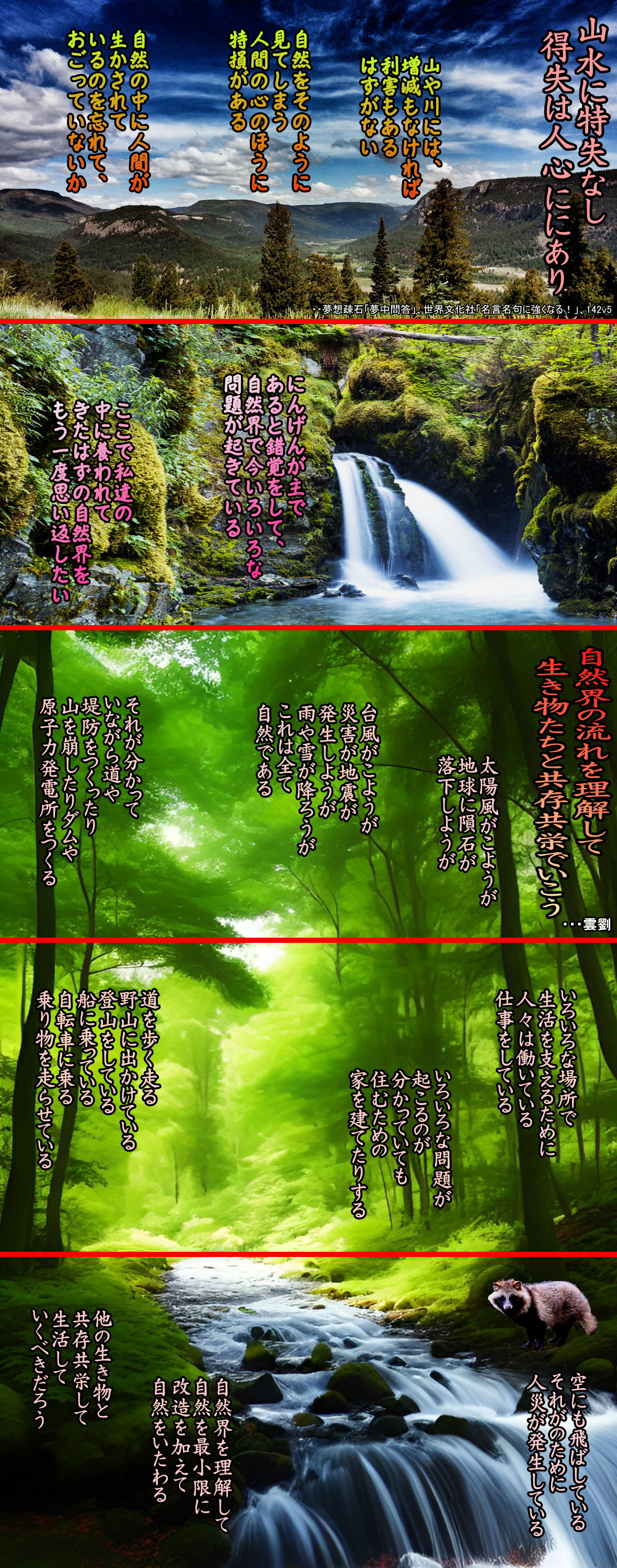 これからの地球と人類は、競争から共生へ、エゴからエヴァへ、つまり本当の意味での 「自然の摂理」に向かって進むようになるようです。それを最後にまとめておきます。