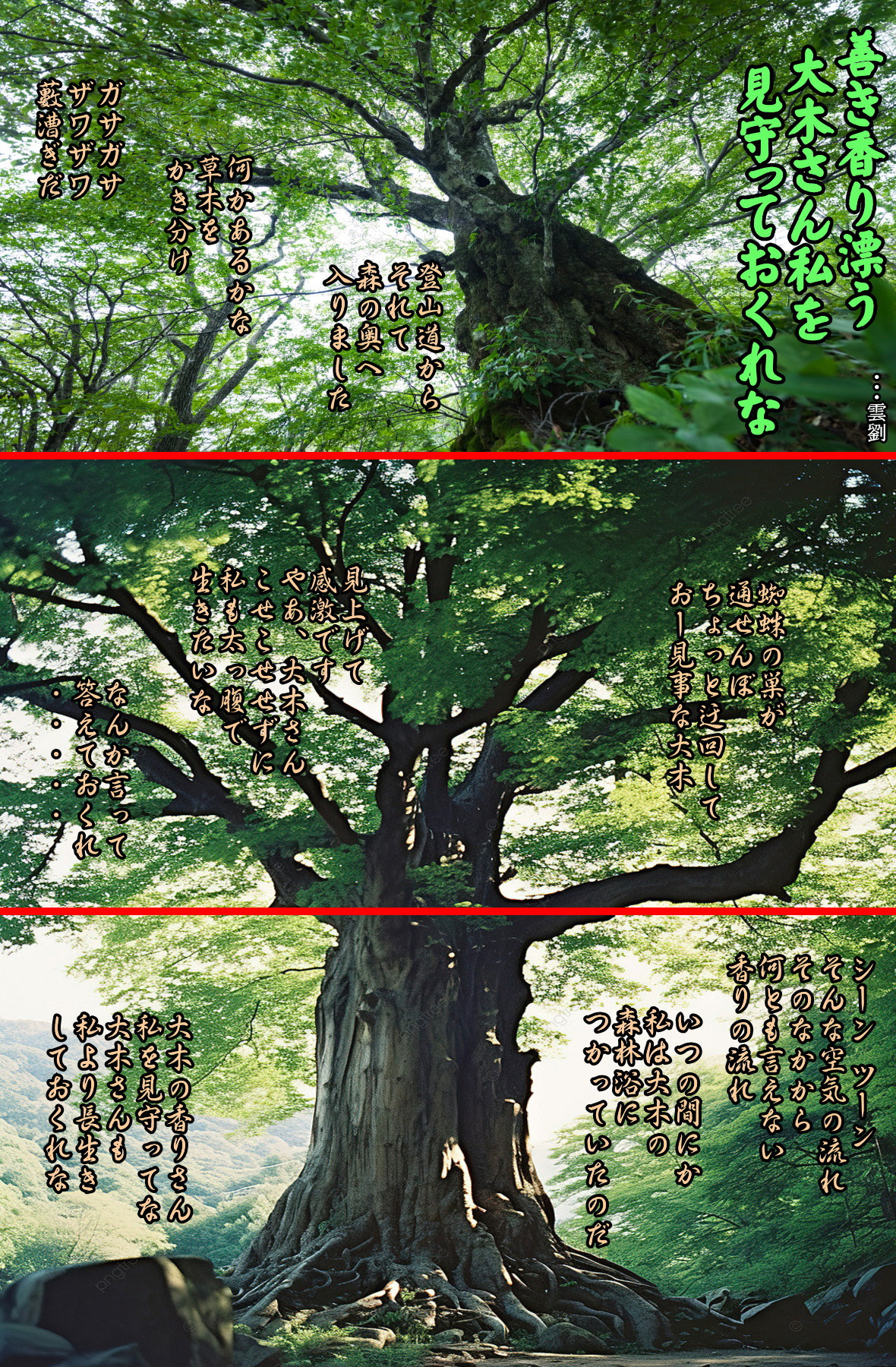 森の上にはお空がある、惠の雨も降れば風も吹く、時も自然を育む