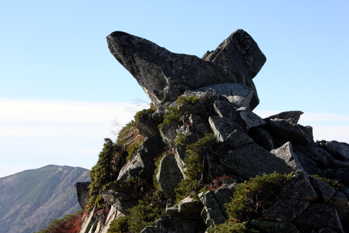 ◎北アルプス・北穂高岳の山頂にあった天狗岩