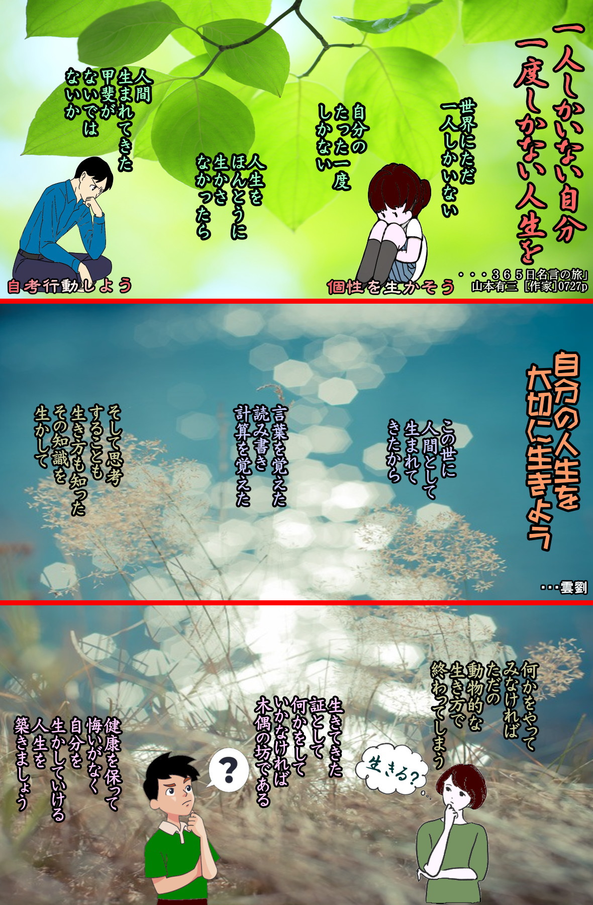 この世は 「憂き世」 であるから、苦労が絶えないのも当然であろう。中国の俚諺(りげん)にも、「天下に思いどおりにならないことが、十のうち七、八はある」と、人生行路のむずかしさを語ったことばがある。しかしまた、苦労しているときが人生の花だという見方もできるのである。人生に苦労が絶えないなら、苦労のなかに喜びを見出す生き方こそ、最高なのかもしれない。せめてそう言いきかせながら、今現在の苦労に対処したいところである。