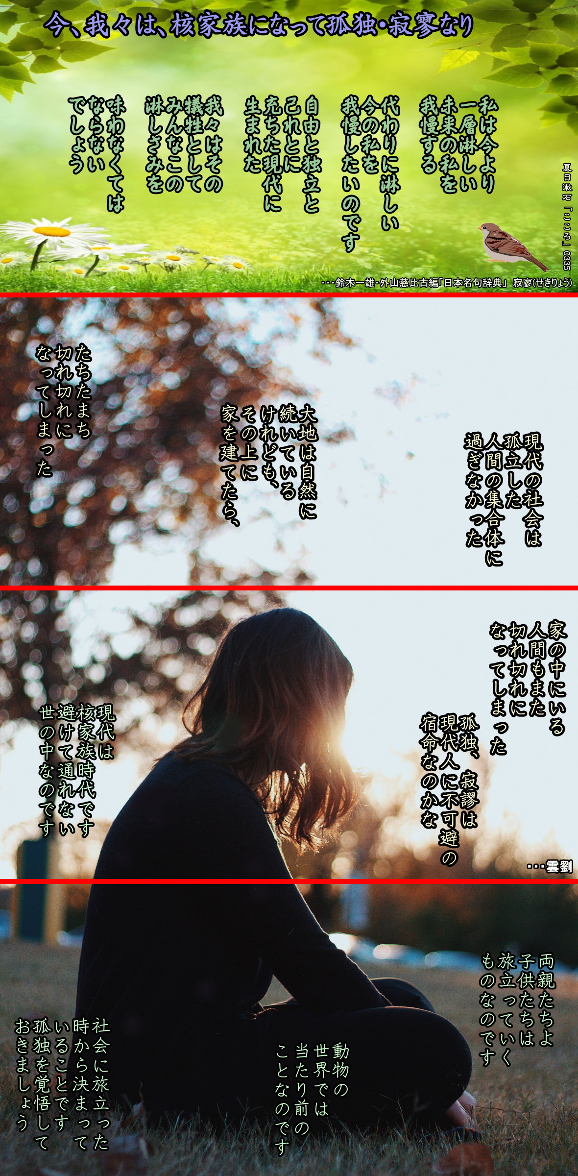 *5、冠婚 2008-11-18・・・日経より ◆婚活、出会い求め見合い・合コン行脚 結婚難の現実、周囲も理解 「現在、婚括中」。最近、こんな言葉を使う三十、四十代が目立つ。結婚相談所や合コンなどをフル活用。「就括(就職活動)」のように結婚活動をするということらしい。だが、青葉の軽い印象と裏腹に、出会いを求める人たちの実情は想像以上に切実。ロにできない苦しさを「婚括」という言葉が和らげ、癒やしている面もあるようだ。 「どうして私は選ばれないの」。垂泉の有名商社の一般職、A子さん(32)はため息をつく。もともとは二十代前半に結婚したいと思っていた。ところが友人が次々結婚していくのに、自分は彼氏さえできない。三十一歳で思い切って結婚相談所に入会した。交際相手の条件は有名企業勤務。合コンは百回以上、見合いも十数人に申し込んだ。だが、会えたのは一人。やめたいと思うこともある。「でも、何もしないと一生独身かと不安を感じ、また婚活にのめりこむ。依存症かも」と苦笑する。 「自分がこんなに不人気とは」。執筆業のB男さん(43)は、軽い気持ちでインターネットの結婚情報サービスに登録したところ、現実の厳しさに驚いた。「四十三歳、自営業、長男」という条件がネック。六十人申し込み、会えたのは三人。うち二人に交際を断られた。「結婚に絶望することもある。でも婚括をやめれば出会いがなくなる」。「自分の魅力を高めたり、積極的に出会いの機会を作ったり、結婚が目的の活動を意識的に行ったこと」。 中央大学の山田昌弘教授と共著で「婚括」時代」(ディスカブァー・トウエンティワン)を出版したジャーナリストの白河桃子さんは「婚括」をこう定義する。結婚相手探し自体は、これまで多くの人が経験したこと。だが、今は社会状況が違うという。二〇〇五年の三十〜三十四歳の未婚率は男性が四七%、女性は三二%。一九八〇年からともに二〇ポイント以上高まった。また、国立社会保障・人口問題研究所の調査では、日本人の結婚は六〇年まで見合いが最も多かったが、今は恋愛結婚がほぼ九割。 一時は見合いに代わる存在だった職場結婚が、九〇年代のバブル崩壊以降減り続けるなど、出会いの環境も変わった。「昔は誰かが相手を見つけてくれた。今はそれでは結婚できない」(白河さん)。だから自然な出会いだけでなく、結婚相談所やネットのお見合いサイトなどの各種サービスにも目を向けようというわけだ。ただ、「婚括」という言葉は、冒頭の二人を含め当事者たちに、別の心の効用をもたらしている。 □ ■ □ 百十四回に及ぶお見合いパーティー参加の軌跡を「崖っぷち高齢独身者」(光文社)にまとめた大学講師の樋口康彦さん(盟は「結婚相談所には額を隠し通っていた」と打ち明ける。「相手を見つけられないかわいそうな人が行く場所」という意識があったためだ。そのイメージを「婚括」という言葉は変えた。「多くの人が婚括すれば不自然な印象が弱まる」と話す。〇七年に結婚相談所に入会した四十一歳の女性も最近、親や友人に話せるようになった。「以前は『そこまでしないと結婚できないの』などと言われた。 でも今は『そういう時代』と興味を持って聞いてもらえる」と、ほっとした表情で誇る。「生きていて良かったと、こんなに思ったことはない」。一月から出会い探しサイト「マッチ・ドットコム」(http://www・match・com)で結婚相手を探していた東京の公務員、佐藤祐一郎さん(36)は、ついに先月、三十代女性と交際を始めた。半年間に百人以上にアプローチしたが、返事はゼロ。それでもあきらめず活動を続けた成果。「以前は身だしなみや女性との接し方が分からなかった。婚活を通して変われた気がする。 やって良かった」中央大学の山田教授は「今の問題は結婚したいのにできない人が多いこと。未婚者は出会いの幅を広げて、多くの人と知り合ってほしい」と期待。その上で「既婚者や親世代こそ婚活を理解し、応援してあげてほしい」と語る。婚活が未婚化の解決策になるかどうかはわからない。ただ、少なくとも結婚したい人を支える言葉であることは、確かなようだ。