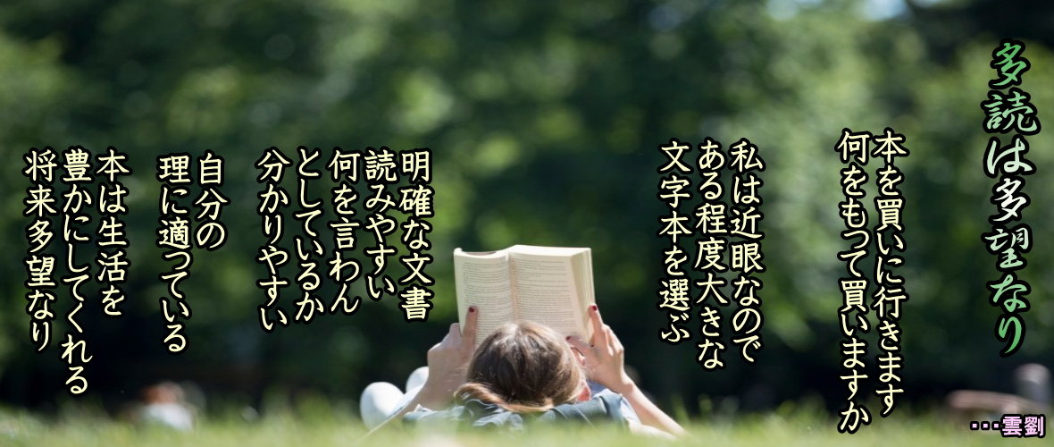 ・・・「元気の出る読書術」・・・ハイブロー武蔵 ◆本を読む人は変わる、 本を読む人は成功する 本を読む人はちがう。何がちがうかというと、変化する点でちがう。時間がたてばたつほど成長していく人である。どうして人は本を読むのだろうか。それは自分を変えていきたいからだ。自分をよくしていきたいからである。 自分のわかっていないところ、足りないところを補い、よいところを伸ばしていきたいと思うからである。もちろん、本を読むのがおもしろいから、そして楽しいから読むというのも真実である。確かに本は読みたすとおもしろくなる。読めば読むほどおもしろい。 しかし、読書は単におもしろいだけではないだろう。テレビや映画や音楽など、ほかにも楽しくておもしろいものはたくさんある。本を特徴づけるのは、「おもしろくて、ためになる」ということだと思う。おもしろくて、ためになるから、人は本を読み続けていくのだ。ためになる部分もないと、読書はそうそういつまでも続くものではない。 本を読む人は、成長する。本を読む人は、成功する。だから、目標のある人、夢のある人は読書をする。そして、成功する人のほとんどが読書好きだ。本を読む人は、変わっていく。本を読む人は、日に日に成功に近づいていく、そして、日本もよくなっていく。 ・・・ 「元気の出る読書術」・・・ハイブロー武蔵 本を買う人は、すでに成功を 手に入れたも同然の人である 本を読む人は、成功する。私には、一つの持論がある。それは、本を買う人は、すでに成功を手に入れたも同然の人だということである。なぜか。それは、本を買う人の心の状態を見ればわかる。本を買うということは、問題意識があるということである。その本を選んで手にするということは、何らかの問題意識があって、その行為をさせているのだ。問題意識は熱意から生まれる。前向きな気持ちから生まれる。つまり、本を買う人というのは、熱意と前向きな気持ちがその人の基底にあるといえる。 読む時間があまりなくてもかまわない。いつか時間があるときがきたら、この本を読むぞ、という気持ちが大事なのである。買ったことさえ忘れている本が、あるとき、何かしら気になって目に飛び込んでくることがある。こんなとき、パラパラとめくって"ひと言"に出会う、そして、それが人生を変えてしまう本だったりすることは、よく聞く話だ。八重洲ブックセンターの徳永巌社長は、「本を買わないと感度が鈍る」といわれる。自ら、それこそ押し潰されるくらい本を買われるという。人生は本を買った数で決まるといっても、大方まちがってはいないとさえ思う。学歴は全く関係ない。 私の友人で、東大法学部を卒業しても、全く本を買わない人がいる。本を読まない。学校の暗記テストには適応できても、その後の人生では、社会や時代とともに対応できない、成長できない人になっている。中学しか出ていない友人でも、本好きの彼は仕事がとてもでき、自分のビジョンを語り、会社で多くの人を引っ張っている。私の読書の最初の先生は、父のいとこだ。私が小学校に入学するころ、北海道の高校を一年で退学させられ、九州の私のうちに預けられ、会社勤めを始めた。私は起居をともにした。彼は、会社から帰ってきてからは、休みの日に、本をよく読んでいた。 そして、私もその様で本を読む。彼が読み終わった本を読むのだ。彼は物事を何でもよく知っていた。何を聞いても教えてくれた。いまは北海道で会社の経営者となっている。私はこういう人たちを見て、どこの学校に行ったとか、どこを卒業したなんか関係ない、どんな本を読んだか、もっといえば、どんな本を買い続けているかが重要なんだ、ということを学んだ。本を買えば、成功する人になれるのだ。 ◆本も詠まないで 乗り越えられる時代じゃないです