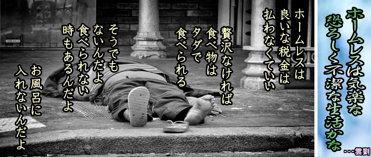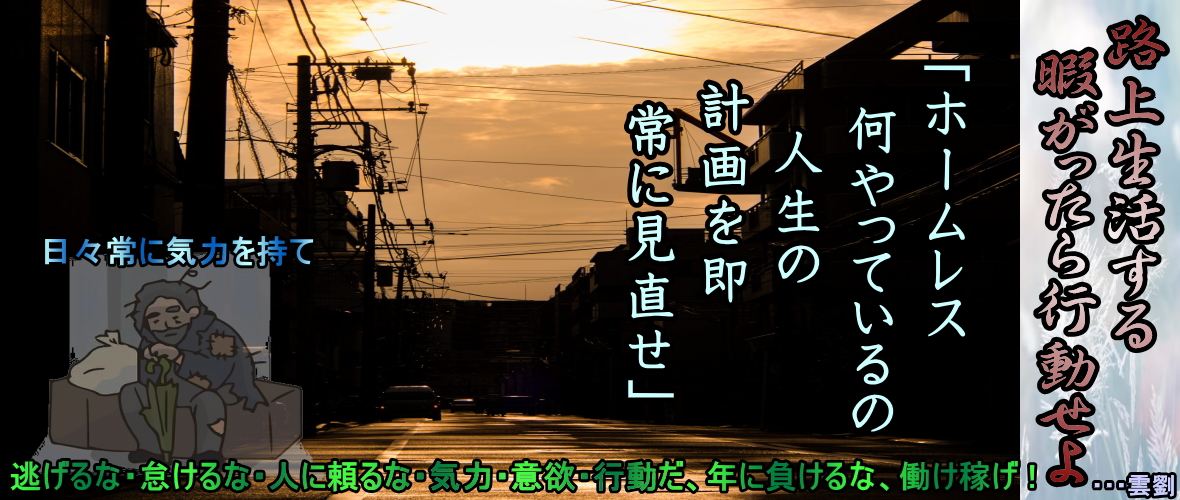 彼は設計の仕事をしていて、毎月三〇万から四〇万円ものお金を稼いでいるのです。おそらく、借金取りが残してきた妻子のもとに押し掛けていったことでしょう。「苦労させている妻子に申し訳ないから」といって、家を借りずにホームレスをしていました。 |