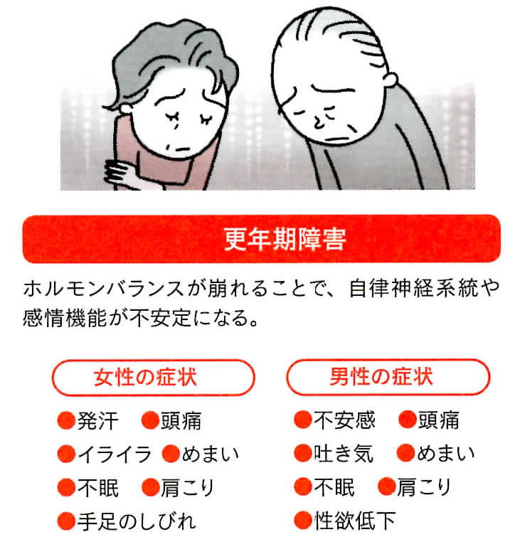 ・・・守谷洋「人生を豊かにする菜根譚(さいこんたん)の言葉」122 ◆失敗を悔やむより、教訓としてどう活かすかを考える 見通しの立たない計画に頭を悩ますよりも、すでに軌道に乗った事業の発展をはかるがよい。過去の失敗にくよくよするよりも、将来の失敗に備えるがよい。 (前集・八〇) 「前車(ぜんじ)忘レザルハ後事(こうじ)ノ師(し)」 (『戦国策』) という有名な格言がある。前の失敗を教訓として同じ失敗を繰り返さないようにせよという意味だ。ここで言わんとしているのも、これに近い。くよくよするよりも、同じ失敗を繰り返さないための教訓として活かすことが大事なのである。また、前段のくだりであるが、あれにもこれにもと知恵や資金を分散するよりも、今まで手がけてきた仕事に集中させるほうが成功への近道なのだという。これも一つの見識と言ってよい。 ・・・守谷洋「人生を豊かにする菜根譚(さいこんたん)の言葉」123 ◆人の命は短い。ムタに過ごしてはならない 天地は永遠であるが、人生は二度ともどらない。人の寿命はせいぜい百年、あっというまに過ぎ去ってしまう。幸いこの世に生まれたからには、楽しく生きたいと願うばかりでなく、ムダに過ごすことへの恐れを持たなければならない。(前集・一〇七) 人生は短い。古くから人々はそれを嘆いてきた。たとえば「人生ハ朝露ノ如シ」 (漢書)だという。「菜根譚」はここで、楽しむことをすすめながら、同時に、ムダに過ごすことを戒めている。適切な助言というべきであろう。 ・・・渋谷昌三「今日から使える心理学」 中高年期に起こりやすいトラブル ◆人生の転換期で、危機も多い時期 中高年期(成人後期の36〜65歳)は、子育てが一段落して生活も安定した、人生の中で最も充実した時期である一方、さまざまな心理的危機を迎える時期でもあります。心理学者のペックは、中年期には @身体的活力の危機、 A性的能力の危機、 B対人関係構造の危機、 C思考の柔軟性 の4つの危機が訪れるとしています。つまり、それまで自分が自信を持っていたことに疑問や不安を感じる時期に来ており、それを再構築する必要があるということです。そして、その対応によって心が成熟に向かうか、退行し破滅に向うかが、決まってしまうというわけですね。さらに、中高年期をどう過ごすかは、続く老年期に大きな影響を与えることにもなります。この時期に起きやすい心のトラブルを避け、健全な心理状態を保つには、これまでの価値観や生き方にこだわらず、新たな生き方や可能性を追求する前向きな姿勢が重要になります。 ・・・渋谷昌三「今日から使える心理学」 中高年期に起こりやすいトラブル ◆更年期障害が心のトラブルの原因に 中高年期の大きな特徴は更年期(45〜50歳ごろ)を迎えること。この時期はホルモンバランスの乱れによって自律神経系や感情の機能が不安定になり、心身ともにさまざまな症状が現れ、ます。これを更年期障害といいます。精神的には過剰にイライラしたり、情緒が不安定になり、生活に支障をきたす場合もあります。ところで、更年期障害というと女性特有のトラブルというイメージがありますよね。ところが、更年期障害は男性にもあるのです。女性ほど急激な症状は現れませんが、中高年期男性のうつ病、心身症、血管障害は更年期障害が原因になっていることがあります。更年期障害を乗り切るには、 @バランスのよい食事と規則正しい生活、 Aゆっくりできる自分のための時間、 Bウォーキング など無理なくできる運動を心がけることが大切です。 ・・・渋谷昌三「今日から使える心理学」 中高年期に起こりやすいトラブル ◆中高年期に起こりやすい心と体のトラブルを知ろう 中高年期に陥りやすい心身のトラブルです。中高年期は、人生で最も充実した時期ですが、気力や体力に衰えが見えはじめる時期でもあるのです。
