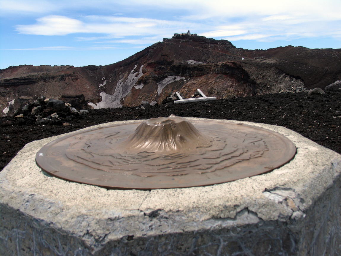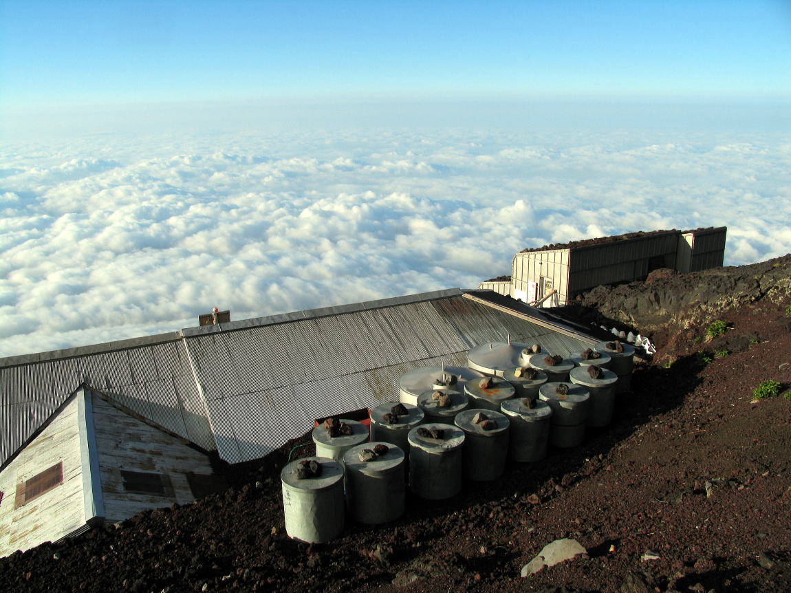 コースはきちんと整備されているから、標識に従って柵やロープで仕切られた道を進んでいけばよい。途中、浅間本宮や山小屋村、神聖な水として崇められている金明水、世界一高いところにある富士山頂郵便局、小石が一面に広がる賽の河原など、観光名所が続々と登場する。日本一の最高峰である剣ケ峯は、正真正銘、日本の最高所。じつさい、「日本最高峰」と刻まれた頂上標柱が置かれており、記念撮影のベストスポットになっている。