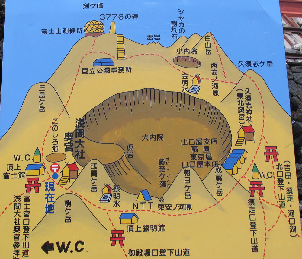 「へええ……」この無信心の登山者は、あきれて仏像を見かえしながら、「つり銭をくれ、二朱金でつりだ」性急にわめきたてた。心のなかで彼の思うよう、「富士山もよその観光地と変わらんな、すべて金だ」。その通り、昔、富士登山にはかなりの費用がかかったので、容易に庶民の登山はかなわなかった。そのために富士講というグループが結成され・毎月積立金を出しあって三年後くらいをメドにグループ登山をしたわけである。