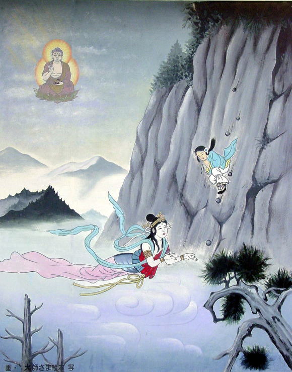 お大師さんは生きておられます。そしてお四国の八十八カ所をお通路しておられます。お四国にはそういう伝説があります。そういう信仰があります。そういう信仰に裏づけられているのか、お四国のお遍路です。いま、あなたを追い越して行ったあのお遍路さん、頭を下げて、「こんにちは……」 と声をかけたあの人が、ひょっとしたらお大師さんかもしれませんね。