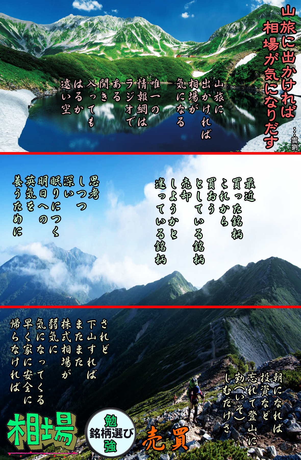 ◆山旅に出かければ相場が気になりだす