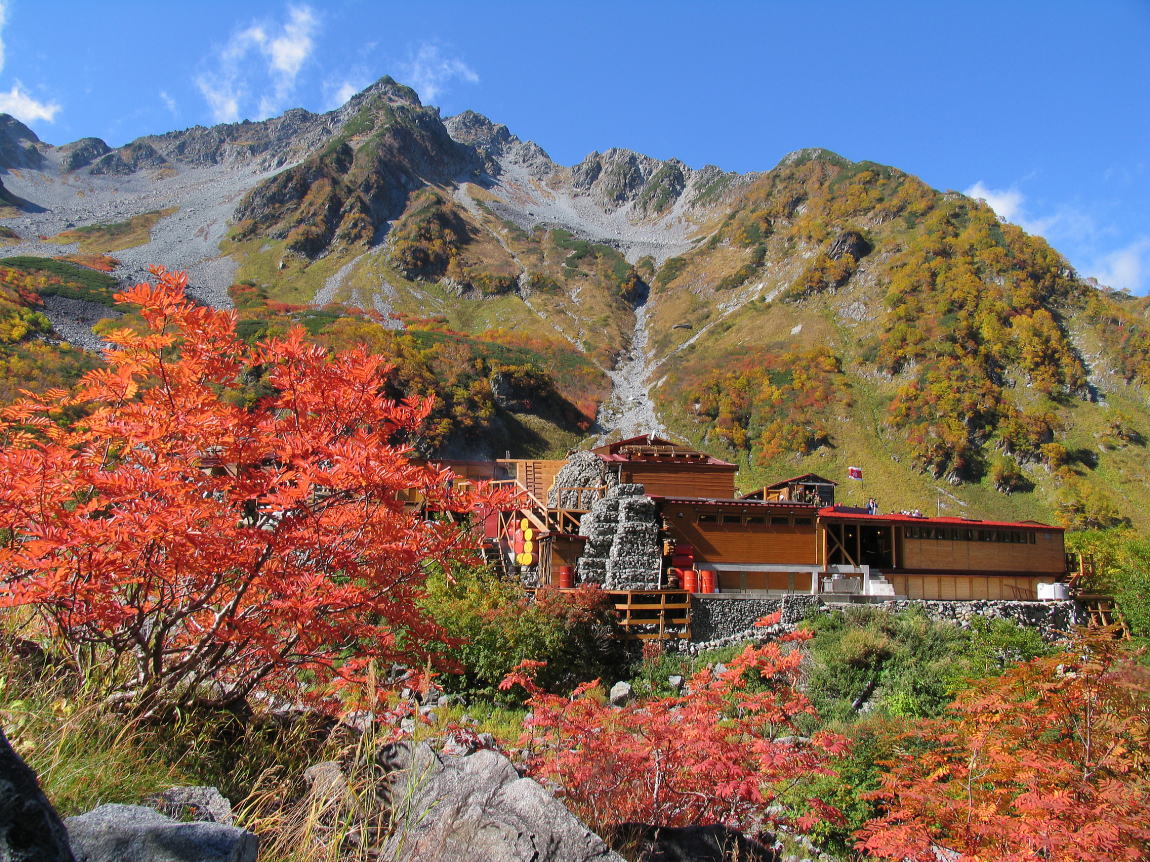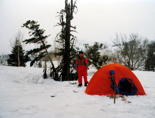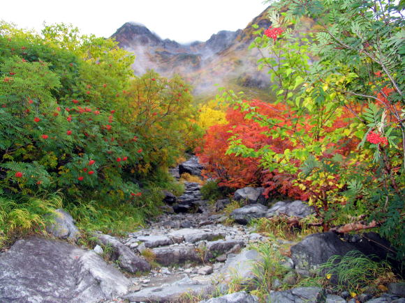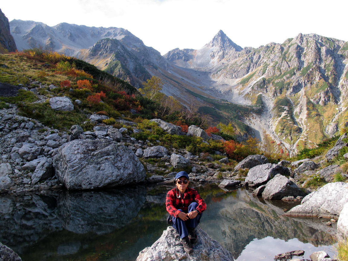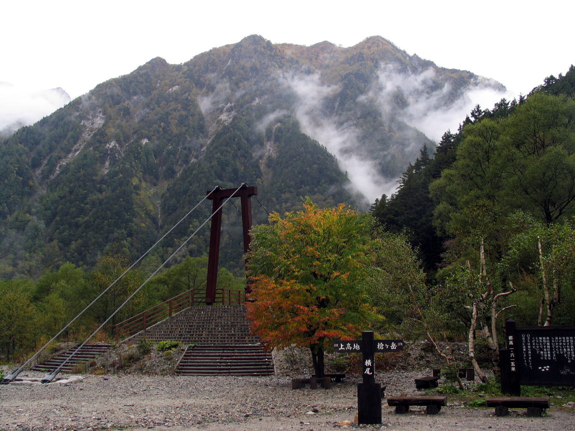 2005-10-** ◆女性三人組と涸沢へ、南稜〜北穂高岳〜奥穂高岳〜涸沢へ 槍沢テン場にテントを張り翌日は雨降りだった。次の日の朝になったら水が出なくなっていたので、川を渡って水取り入れ口のホースがゴミで詰まっていたので取り除いた。テン場に帰って確認したらホースから水が流れていた。彼女たちも朝に水が出ていなかったので困っていたところだったが出てきたのでホッとしていたと話された。朝食を済ませて御一緒に横尾へとお話をさせていただきながら歩いた。