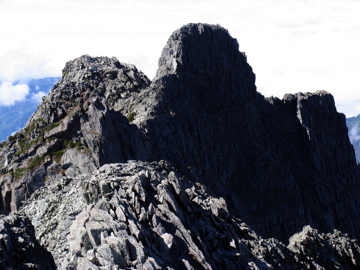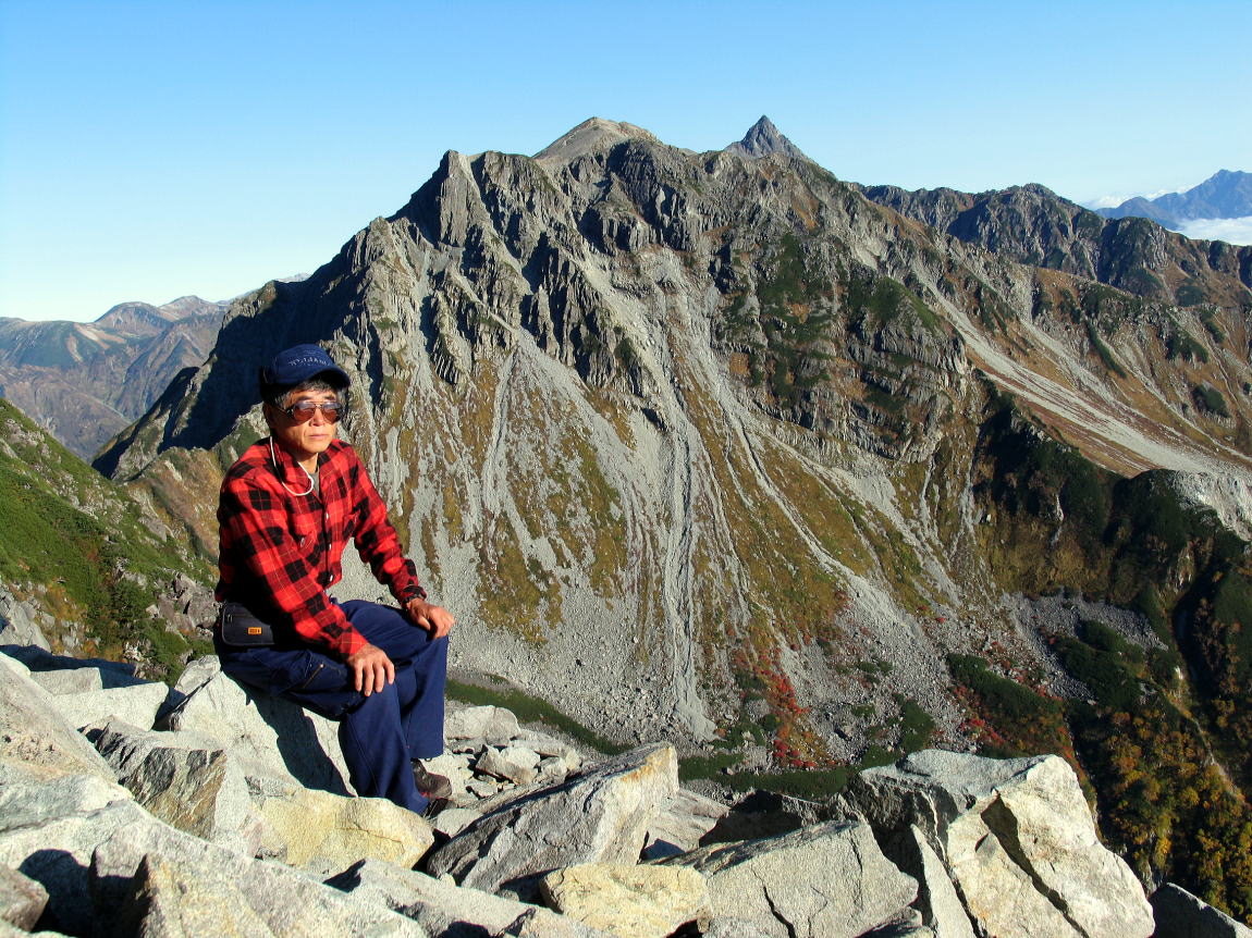 東稜尾根を登って、途中からの記念写真です 南岳・槍ヶ岳 |