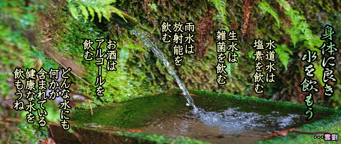 ◆2、水・飲み物について ●水について、水道水について ・・・黒田眞知訳・ケヴィン・トルドー著「病気にならない人は知っている」より ◆1、水道水が動脈壁に傷をつける 次は飲み物の話をしよう。飲み物に関しては二つの問題がある。一つは、ほとんどの人が十分な水を飲んでいないということ。もう一つは、水道水の毒性が信じられないほど高いということだ。水道水には必ず化学物質が入っている。主に塩素とフッ素化合物だ。両方とも非常に毒性の高い物質だ。塩素を含んだ水(ほぼすべての水道水だが)は動脈硬化の原因となる。 まず水を十分に飲んでいない問題だが、ほとんどの人は脱水症状にあると言って良い。そのために体の痛み、こわばり、関節炎、喘息、アレルギーなどといった問題を抱えている。脱水症状にあるということは、体の細胞に十分な水分が行きわたらないということだ。何よりも、細胞が毒素を排出する能力に影響を与える。細胞は清潔な液体の中にさえあれば、いくらでも生きながらえる。液体の中で細胞は不要な物と毒素を排泄する。 排泄された毒素などを取り除いて、常に清潔な環境を保ってやれば、細胞は老化しないようだ。これはちょっとした驚きではないか!。それではどのような水を飲むべきか? 水道水は間違いなく最悪の汚染水だ。もちろん天然水は水道水よりましだ。政府関係機関や利益団体の中には、「ボトル入り飲料水には水道水より多く細菌が含まれているため、水道水より良質とは言えない」などと誤解を与える発表をしているところがある。 水道水には塩素が含まれているため、細菌はいないと彼らは胸を張る。しかし問題は、その塩素が有機体である細菌を殺してしまう点にある。私たちも有機体だ。塩素は有毒であり、それが有機体である細菌を殺す目的で飲み水に入れられている。私たちが水道水を飲むときには、毒を一緒に飲んでいることにる。 私の家では、逆浸透膜浄水器によって家の中で使う水をすべてろ過している。旅行中はろ過または浄化されたボトル入りの天然水を飲む。ちょっと話を変えよう。みなさんはコレステロールのこととなると、話が尽きない。コレステロールは、医薬品メーカーにとっては最高のビジネスだ。コレステロール値は下げなければいけないものだと、メーカーはみなさんに信じ込ませている。 だが心臓病の原因は、血中のコレステロール値ではない。血中コレステロールの量は問題ではない。問題が起こるのは、動脈壁にコレステロールがくっついて、血管を詰まらせ、血流を妨げるときだけだ。それでは、コレステロールが動脈壁に付着する理由は何だろうか。 それは動脈壁の傷だ。動脈壁が傷ついていると、そこにLDLコレステロール (いわゆる悪玉コレステロール)が付着する。逆に傷さえなければ、どんなに高い値のコレステロールも動脈の中をすいすい通ってゆく。では動脈壁に傷がつく理由は何だろうか? ◆ ・・・黒田眞知訳・ケヴィン・トルドー著「病気にならない人は知っている」より ◆2、水道水が動脈壁に傷をつける 主な原因は、以下のように三つある。 1.塩素の入った水 飲み水、シャワー、風呂、プールの水は、特に動脈壁を傷つける大きな原因だ。 2.硬化油(マーガリンやショートー一ング) 箱入りの食品の九〇パーセントのラベルには、「硬化油」または 「一部硬化油を使用」と書かれている。 3.ホモジナイズ乳製品 「ミルクやヨーグルトはローファット (低脂肪) のものにしているからだいじょうぶ」という人がいるが、脂肪とコレステロールは何の関係もない。みなさんは騙され、誤解させられている。ホモジナイズ加工は乳製品を、動脈壁を傷つける死の食品に変えてしまう。 コレステロールの話を持ち出したのは、水道水に含まれる塩素と動脈硬化の関係を知ってほしかったからだ。水道水の毒素は、以下のようにして私たちの体内に入ってくる。 ・水道水を飲む。 ・水道水を使って作られたものを食べたり飲んだりする。 ・水道水を使って育てた食品を食べる。 ・水道水を飲んだ動物の肉、魚、乳製品を摂る。 ・水道水のシャワーを浴びる、入浴する。 水道水の中で泳ぐ。 ◆身体に良き水を飲もう