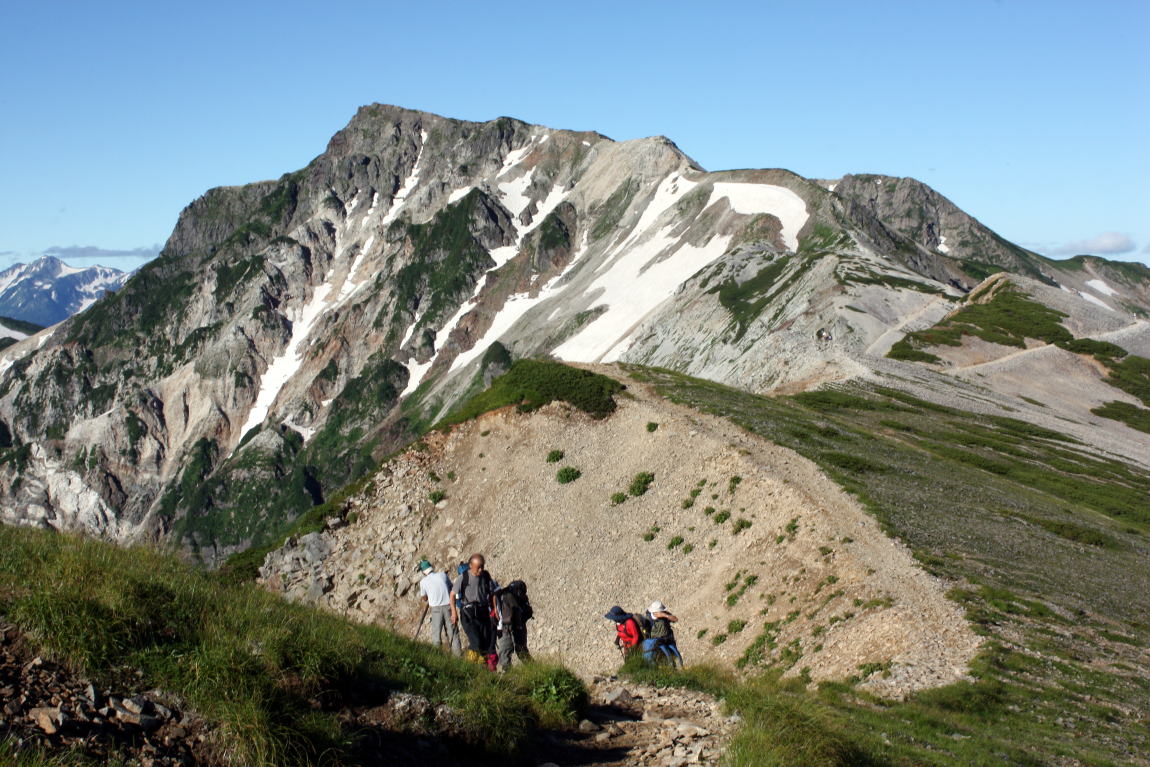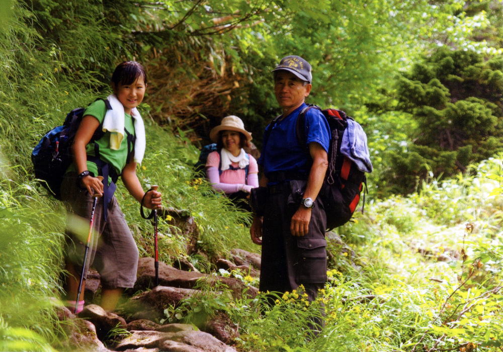 白馬岳方面へ登山するために蓮華温泉の駐車場で本を読んでいたら、私の愛車の隣に止められた車に女の子が乗っていた。彼女たちは3人で白馬岳蓮華温泉ロッジ泊まりであった。ロッジ小屋に泊まって寝ていたが煩く暑く寝られないと車に来て寝ようとしていた。幾度もロッジ〜車へと行きいきして何度も話しかけられ話をして私は読書をやめて眠りについた。早朝の3時頃に出発して白馬岳へとに登って8時06分に着いた。白馬大池から蓮華温泉へと下っていたら、登って来られて11時10分頃に出会った。物凄く遅い出発で、この時間になったようだ。今日は大池山荘に泊まると話してくれた。