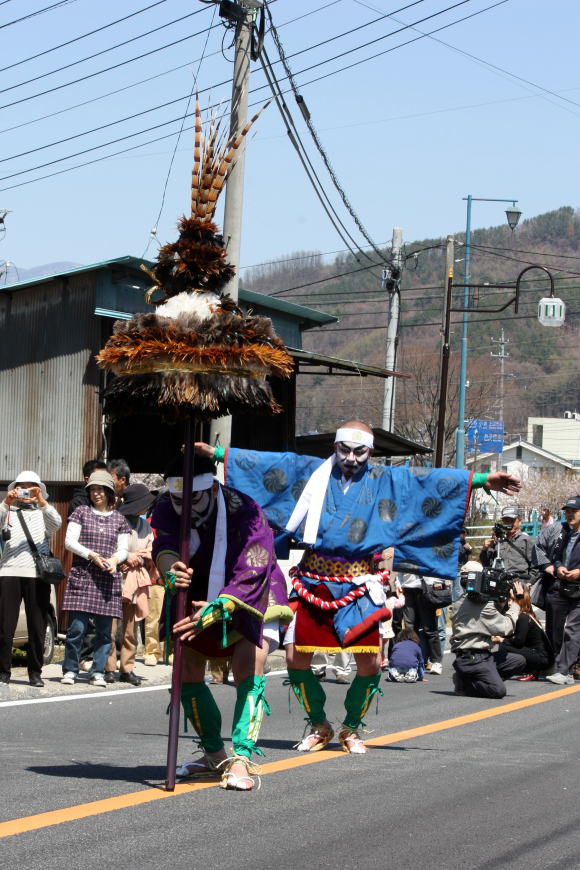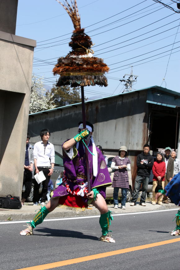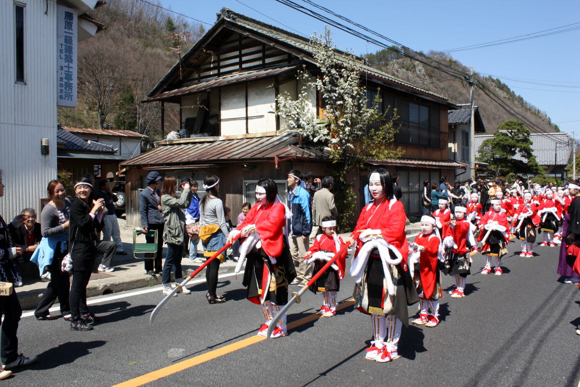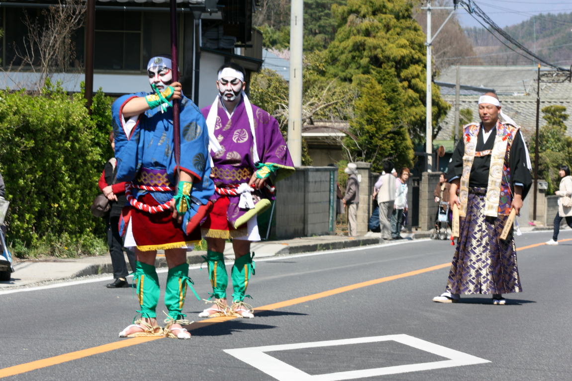 上田市旧丸子町腰越町、起源の古き歴史と伝統のある一本木諏訪神社御柱大祭(御柱祭(おんばしらさい))に出かけた。4月25日(日)の朝7時30分に自宅を出発した。まだ車道に残雪があり寒々しい雰囲気を感じながら菅平を越えて腰越町へ自宅から約60km走ってに9時頃に着いた。この辺り(依田川沿い・一本木諏訪神社・腰越地区)の桜も須坂市の臥竜公園とほぼおなじような咲き方であった。