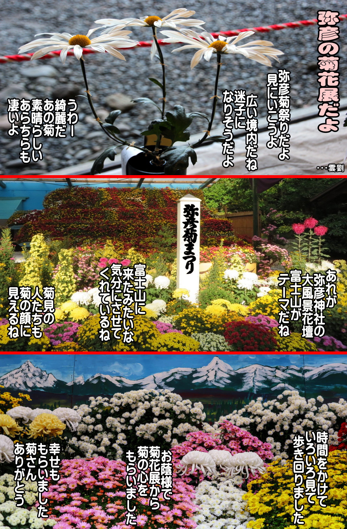 「菊ふれて 心休まる 弥彦かな」・・・雲劉