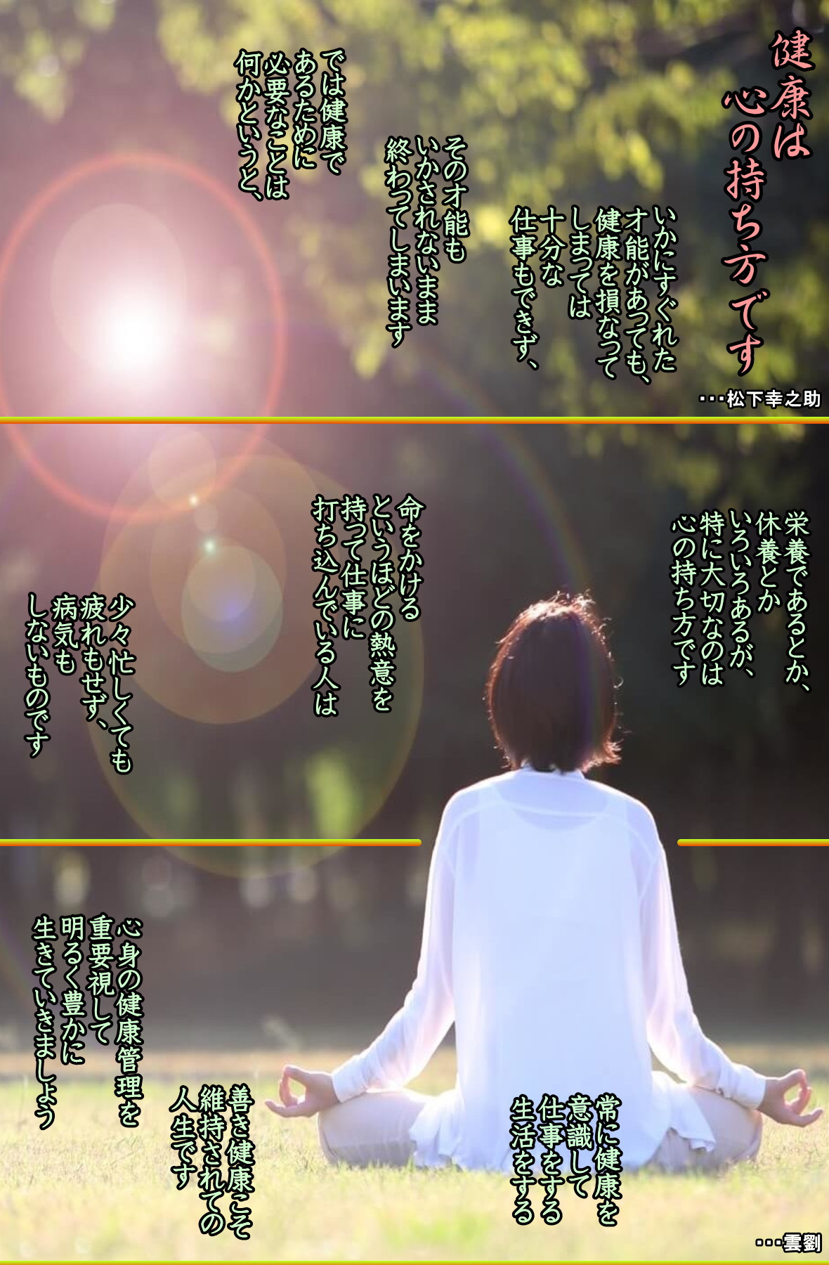 病を一つのしれんと感じ味わい、大事に大切に養いたい・・・松下幸之助