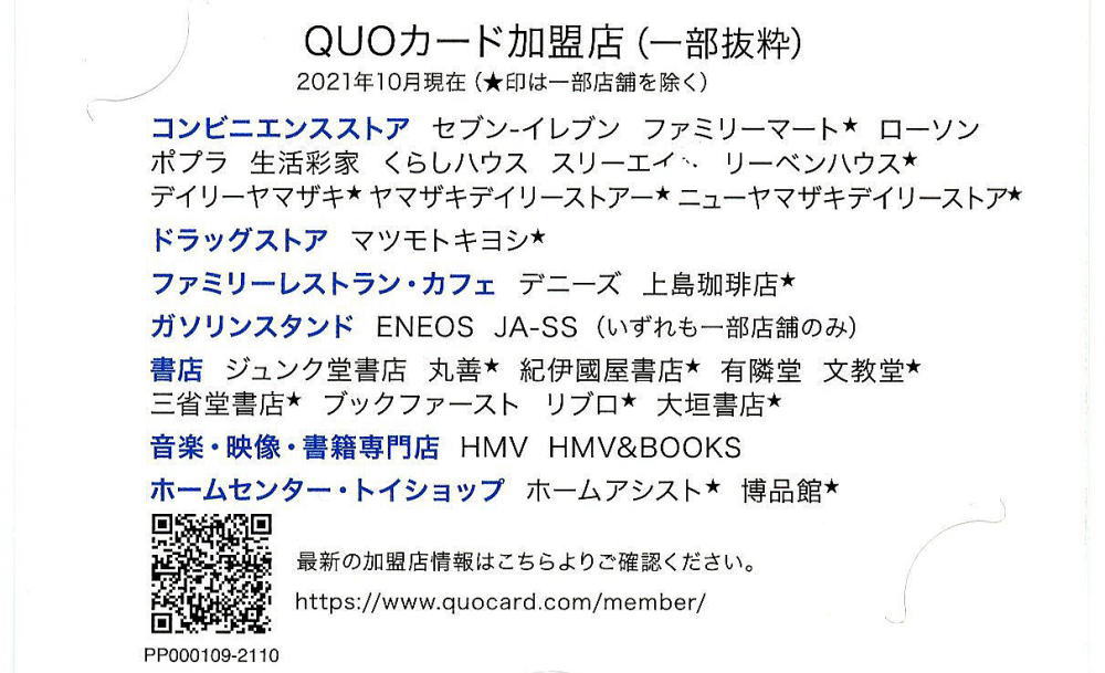 優待、いただいた各QUOカード