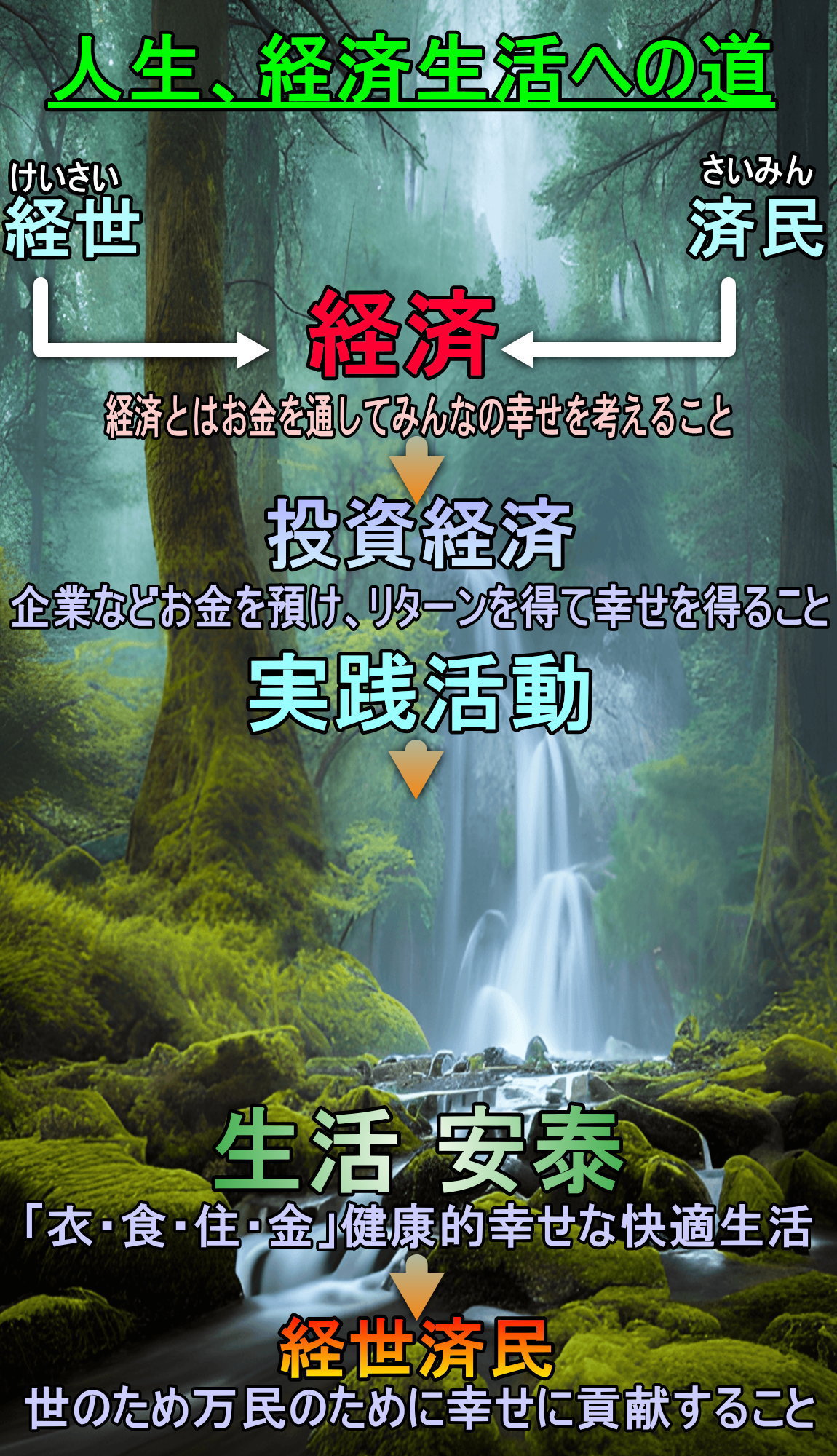 ◆[1]経済とは、お金とは、人生とは *経済とは 人間の生活に必要な商品と金銭との生産から流通、交換と分配、それに消費などの諸活動のことです