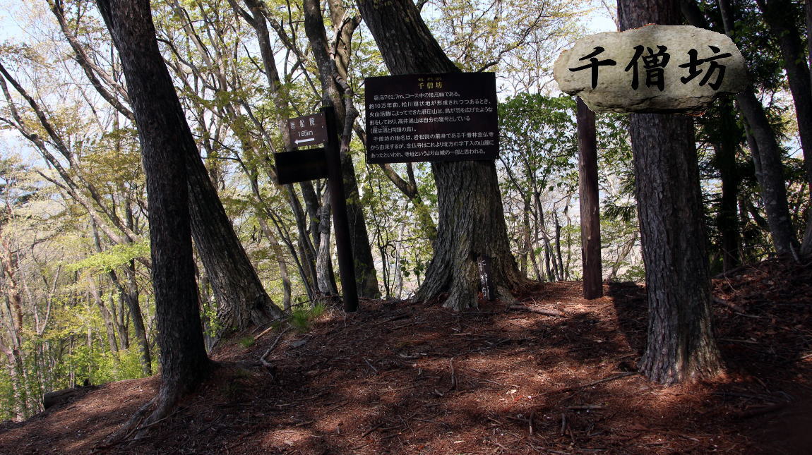 千僧坊から滝の入城跡方面へ数分下った鞍部(コル)にあります