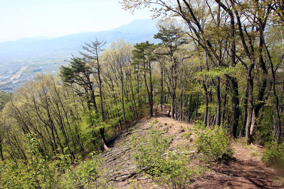千僧坊から岩松院への下り尾根 遠くに飯縄山が見えている |