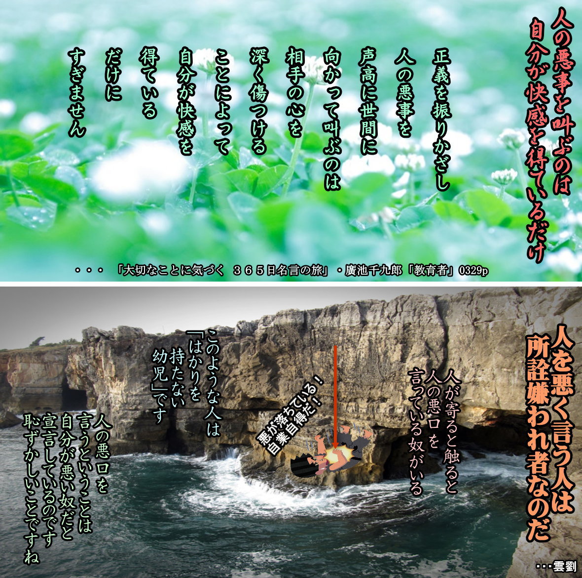 それは、(いのち)の尊厳に、みずから一度も触れていないからである。(いのち)の力強い手に、みずからのちっぽけな存在をまるごとつかみとられる体験を持たないからである。どれほど異なった思想の持ち主も、<いのち〉においてつながっている。民族や宗教を比較するかぎり、何の共通点も見出せないとしても、同じ(いのち)を共有する人間であるという事実は動かしようがない。平和を構築するのは、国連でも各国政府でもない。われわれ一人ひとりが、自身の中において、平和を構築するのが、人類が共存共栄していくための最初の一歩となる。