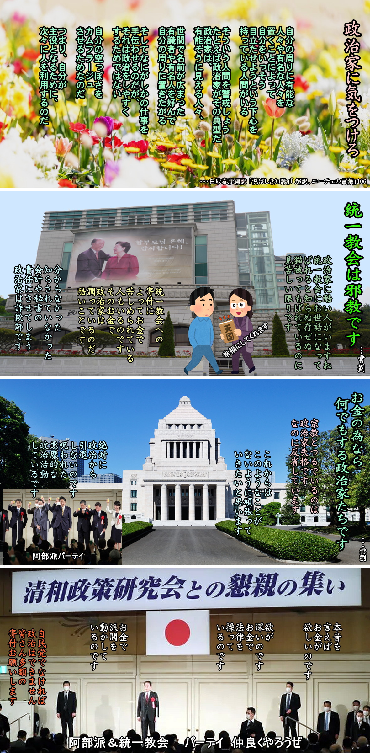 統一教会は宗教と政治が密接に結びついた関係を保っている・・・やめろ