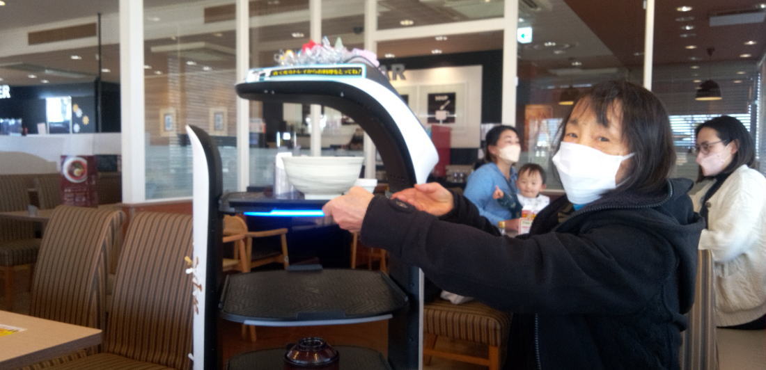 ガスト須坂店にて ロボットが運んできた! ロボットに子供が注目している! |
