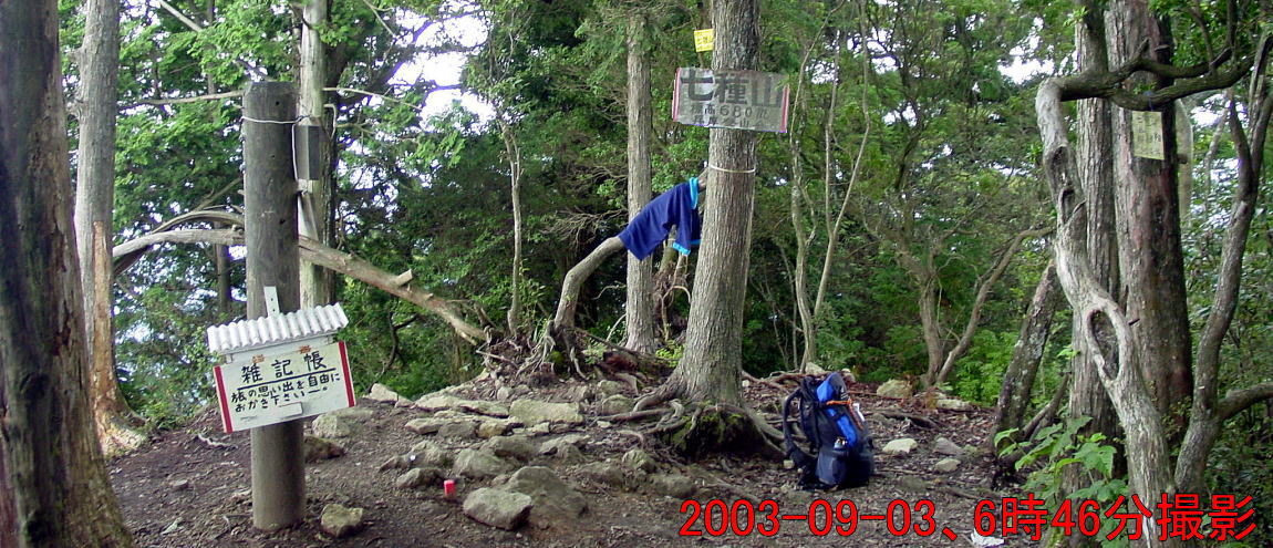 2003年に七種山に登ったら、旅の思い出「雑記帳」があったのでノートの書き込まれた文を読み記帳した。その年の暮れになったなら兵庫山学会の川上さんから、いろいろな記録などが送られてきた。翌年から年賀状が届き現在までいただいている。私が歳を知っている限りでは私の家に届く「川上さん(95)の年賀状は最高齢」である。私も95歳まで元気に過ごし年賀状を出していけるだろうか?。今現在では自信が全くない心境である。