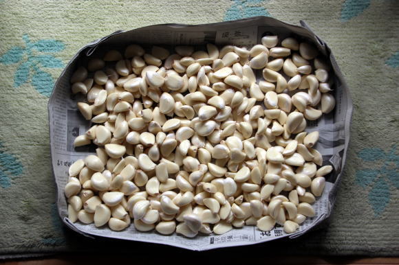 2023-09/09、ニンニクの皮を剥き3週間ほど冷蔵庫に保管