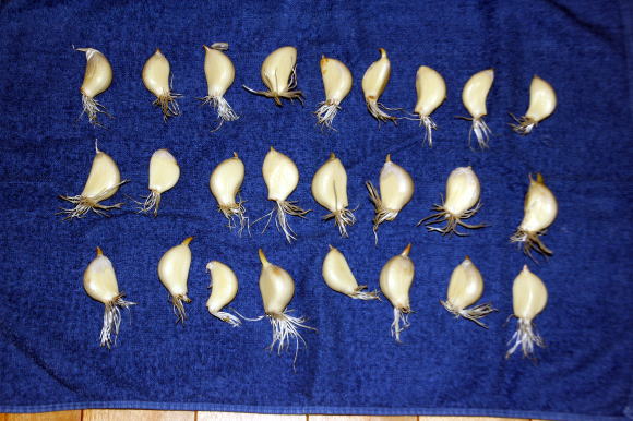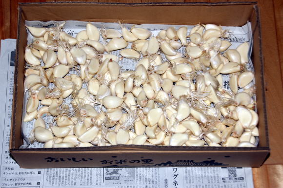 2023-10/05、保管したらニンニクの根が出ていた、早速当日に植えた |