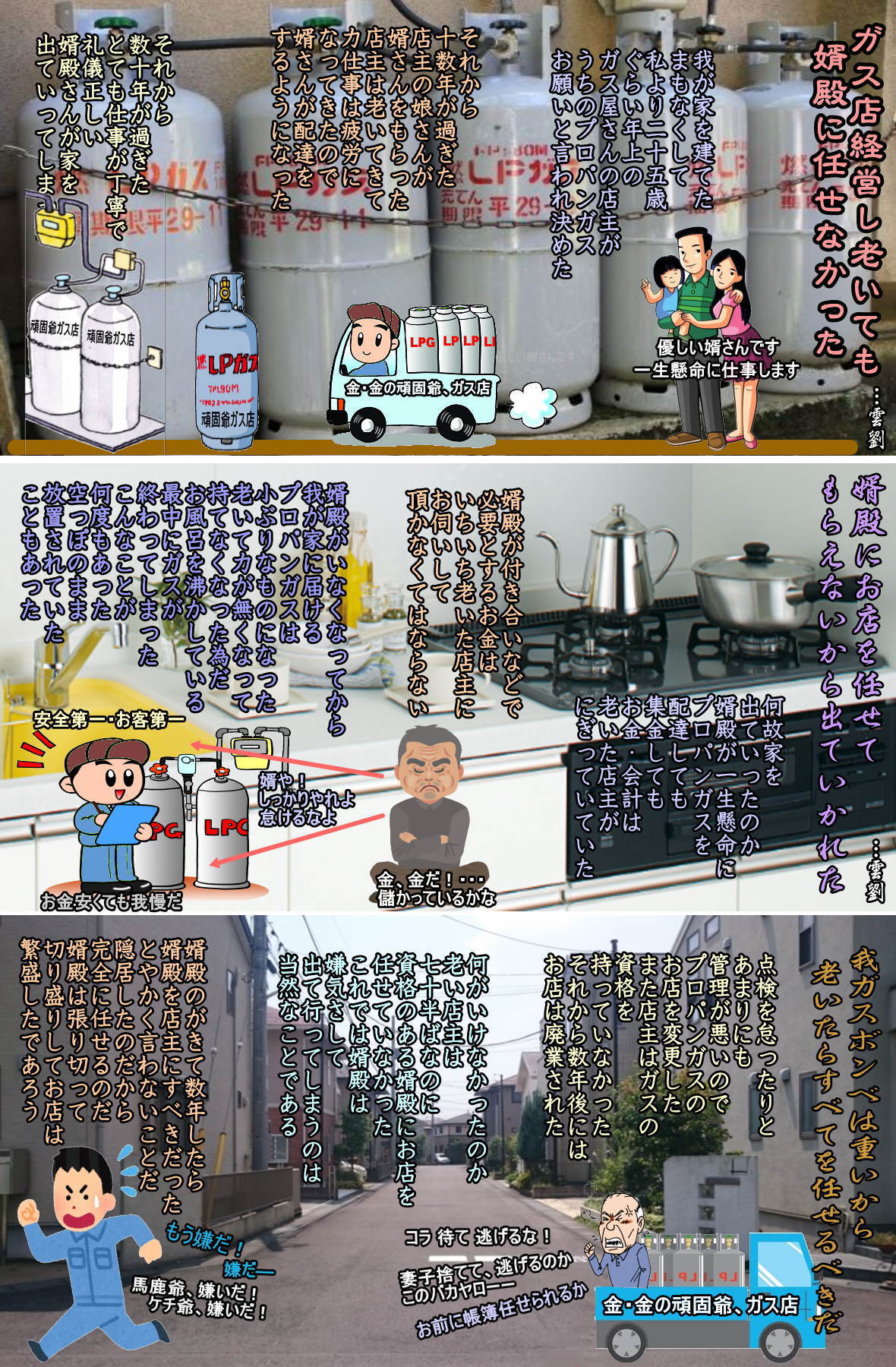◆ガス店経営し老いても婿殿に任せなかった