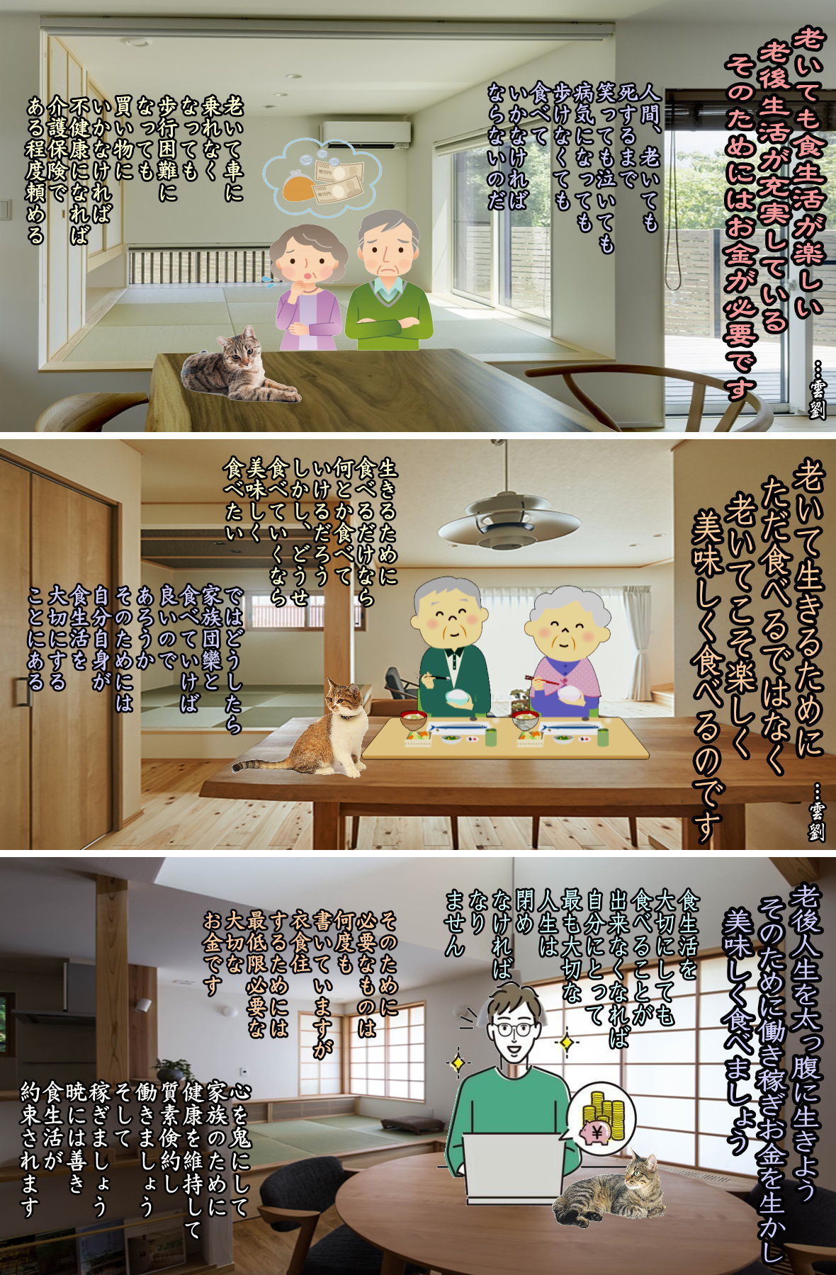 ◆老いても食生活が楽しい、老後生活が充実している、そのためにはお金が必要です