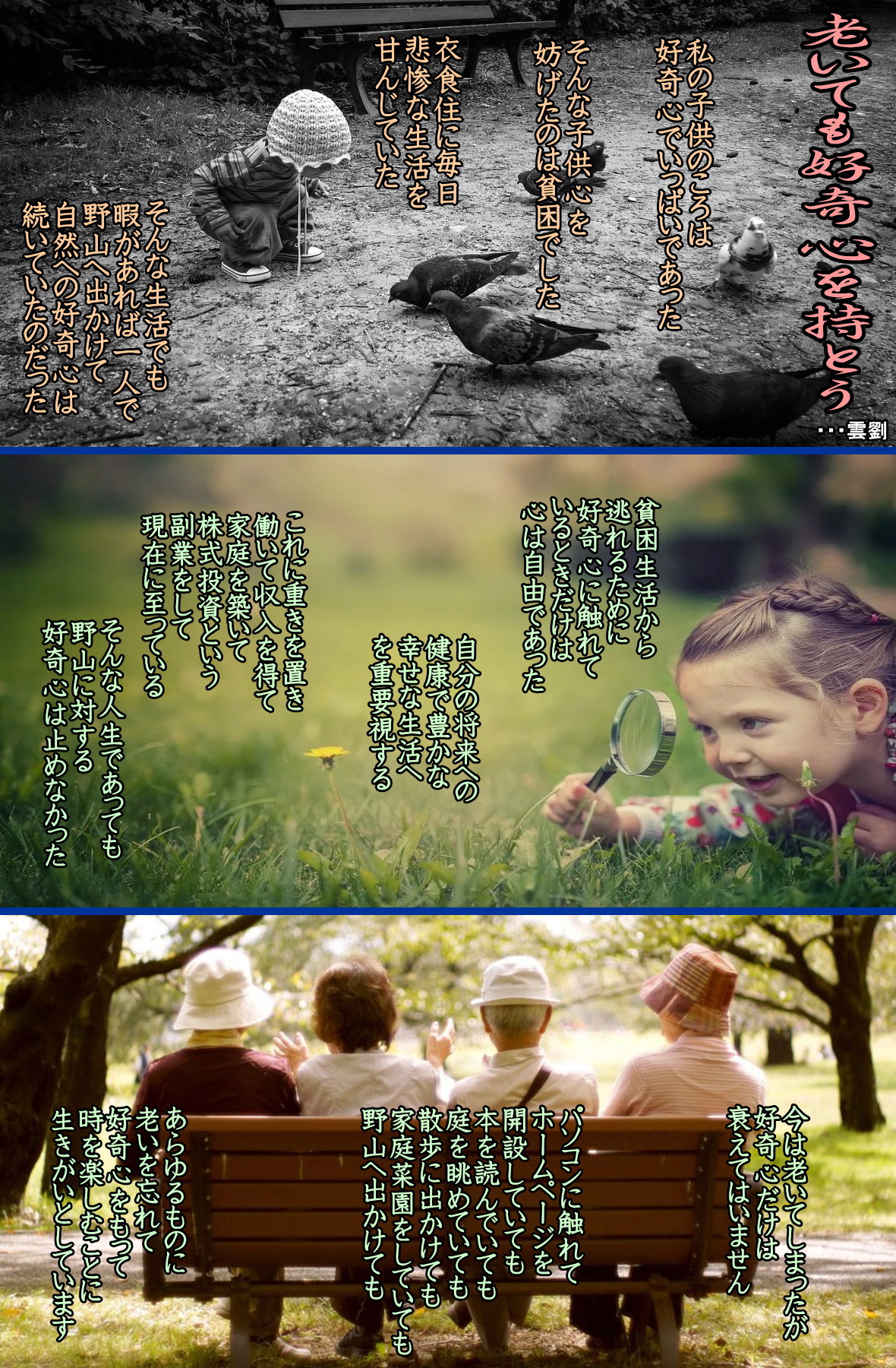 ・・・森博嗣著「自由をつくる自在に生きる」2014年発行 ◆老いと好奇心 人間でも動物でも、歳をとるほど新しいものを警戒し、ときには頭からそれを拒むようになる。若いときには、珍しいというだけで飛びつき、少々のリスクがあっても好奇心が優って近づく。「若さ」とは、すなわち「冒険」である。いろいろなものに手を出し、自分の中に取り入れようとする。この好奇心は、動物の中でも特に人間に強く観察される特徴だろう。そういった若者の姿は、年寄りから見ると、つい窘(たしな)めたくなる対象となる。 どうせ上手くいかないのだから無駄なことをするな、と忠告がしたい。経験を積むほど、結果が予測できるようになるからだ。上手くいかない例を沢山見てきたことで、その危険さが気になるわけである。また、歳をとるともう失敗ができない、という警戒心が自然に大きくなる。「年寄りの冷や水」的なことはやつてはいけない。 もっと落ち着いていなければならない、という常識が自然に発生するし、周囲も年寄りには、そういつた「重鎮」的機能を期待するようになる。基本的に、若いときほど革新的であり、歳をとるほど保守的になるのは一般的な傾向であろう。犬を飼っていても、同様のことが観察できる。子犬はなににでも興味を示す。しかも友好的だ。 自分以外のものをすべて受け入れようとする。そういう積極性、社交性を子犬は持っているから、ほかの犬とも喧嘩にならず、すぐに仲間になれる。子犬が放つ匂いがそもそも友好的なのだそうだ。しかし、成犬になって落ち着いてくると、新しいことをしなくなる。自分の好きなことはもうほぼ決まっていて、同じことばかりするようになる。習慣を変えようとはしない。歳をとってから出会うと無条件に友好的にはならない。 成犬であれば、お互いに警戒をして近づくし、ときには吠え合うような場合もある。どうしても懐疑的になるようだ。まさしく、人間と同じではないか。街を歩いていて見かける老人たちは、みんな難しい顔をしていないだろうか。子供ほど笑顔である。もちろん、よい大人になったら、へらへらと始終笑っているわけにはいかない。 それこそ変な人間だと思われてしまう。もともと、日本人の場合(特に男性ならば)、滅多なことでは笑わない、というのが落ち着いた大人の理想像であるかもしれない。武士はにこりともせず、高僧も感情を表に出さないのが良しとされるようだ。茶道でもそうだし、剣道でもそうだし、それが日本的な「道」を極めた姿だったことは確からしい。けれども、これもやはり時代を考えるべきだし、そういった固定概念に縛られていること自体が不自由である。 ◆老いても好奇心を持とう