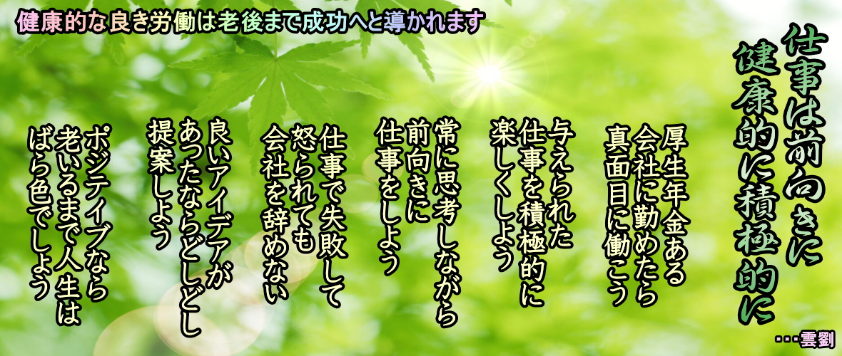 ◆株式から 私が勤めていた製餡会社の社長さんは、株式投資をしていた。直接というよりは、雑穀の売買している関係会社の息子さんの仲人をしてやつた弁護士さんから株の儲け話を持ちかけられてしていたのです。条件は「株式投資のお金を出してもらいたい。 儲けたら半分貰いたい、損したら借りたお金は全額負担する」という条件だったと記憶している。このような取引を弁護士さんとの間で頻繁に行われていた。私にも伝わってきていた。 社長さんは大儲けしてアパート一つ建てたのだった。社長さんは私にも株式投資を話をしてくれていた。そのおかげ株式等の勉強は怠ることなく継続していった。 18歳になったころに、社長に株式投資をしたいと言ったら、二~三質問されて、もっと勉強してからしなさい言われてしまった。20歳になったころにもう一度株式投資をしたいと行ったがダメだった。株式投資への勉強諦めずに継続していった。 ◆ ●会社とは? 社畜を通すなら厚生年金制度がある会社に勤めるべきだ 上場している会社は、ある程度理解してたが、私が勤めていた東京での製餡会社のような小さな会社に対しては理解が乏しかった。国民年金・厚生年金などには無知に等しかった。また大きな会社ほど休みも多く給料も多くボーナスも多く支給されるという基本的なことも分かっていなかった。 中学を卒業したころは、まだまだ世間が分からない田舎者のガキであった。社長から20歳を過ぎて途中から国民年金に入ったと言われた。年金とは何か分からなかったので本屋さんで立ち読みして理解していった。大きな会社には厚生年金というものがあることを知った。 いまこのまま製餡会社に勤めていても老いてから貰えるのは国民年金のみと分かった。国民年金のみで老後に都会で暮らしていけるのであろうか?。心配性の私の脳は恐怖を感じるようになっていった。 仕事をしていても不安の日々であった。もう一つは都会に住んでいて野山が非常に恋しくなっていたことであった。私が22歳の秋に都会ジャングル生活は私には不向きと判断して母の従妹の製餡会社社長に説明したら親を呼べと言われて母を東京に呼び寄せて丁寧に理由を説明して了解を得た。 製餡会社を辞める許可がでたのであった。昭和42年12月31日に製餡会社を辞めて信州信濃町へ帰った。 ◆仕事は前向きに健康的に積極的に