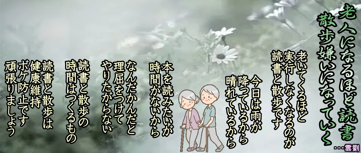 ・・・雲劉 ◆老人になっても、 パソコンを学ぶことは脳が老けにくい ・・・雲劉 ◆老いての後悔はますます老いさせる ◆老人になるほど読書・散歩嫌いになっていく