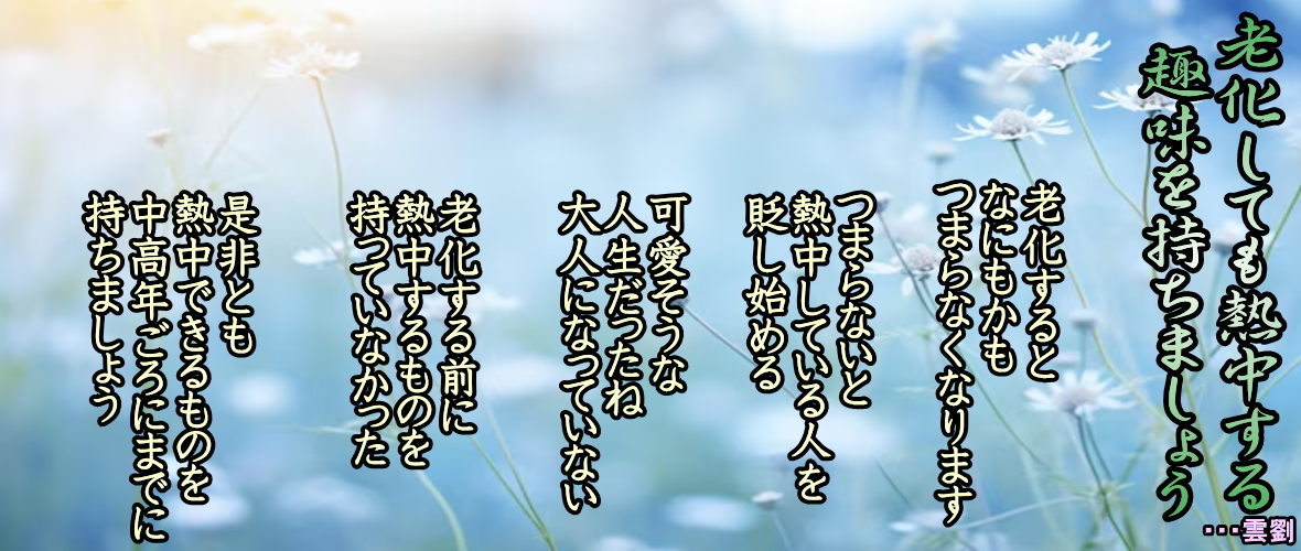 ◆老化しても熱中する趣味を持ちましょう