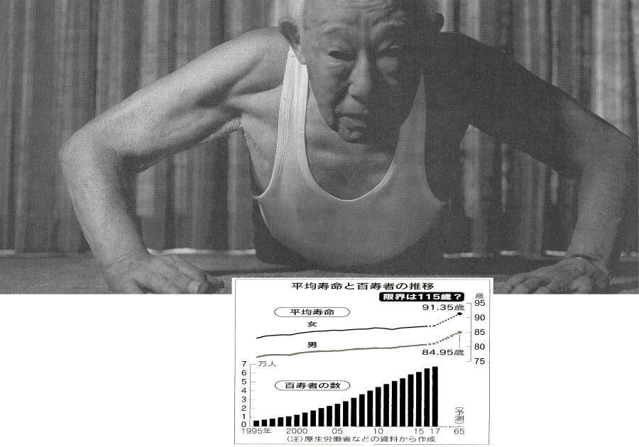 *寿命つかさどる染色体に脚光 日本人の平均寿命は第2次世界大戦後の約70年で30年以上延び、2016年には男性が80.98歳、女性が87.14歳になった。国立社会保障・人口問題研究所は17年に発表した将来推計人口で、65年には男性が84.95歳、女性が91.35歳まで延びる可能性を示している。また寿命の延びに伴い、100歳以上の「百寿者」になるのも現実味を帯びつつある。17年には全国で6万7千人を超えた。 9割近くが女性だ。医療技術の進歩などが大きく影響している。人は何歳まで生きられるのだろうか。早稲田大学の創設者で元首相の大隈重信は「人生125歳説」を唱えた。摂生すれば、この天寿を全うきると説いた。一方、米国のアルバート・アインシュタイン医科大学などが16年に英科学誌ネイチャーに発表したのが「人の寿命の限界は約115歳。世界最高齢の人が125歳を超えるのは1万分の1未満の確率」という論文だ。各国の統計データなどをもとに数字を割り出した。人は老化する。年を重ねるとシワが増え、けがが治りにくくなり、病気になりやすくなる。 体全体の老化は様々な要因が複雑に絡み合っているが、細胞レベルでの老化研究は着実に進んでいる。その一つが体をつくる細胞の染色体の端にある「テロメア」だ。染色体を守るテロメアは細胞が分裂するたびに少しずっ短くなる。それに伴い細胞分裂の回数が減り、やがて分裂しなくなる。これが細胞の老化で、テロメアが「命の回数券」といわれるゆえんだ。京都大学の石川冬木教授は「テロメアの状態が動脈硬化や癌などと関連することも分かってきた」と話す。在日の研究分野だ。テロメアを長く保つことができれば寿命は延びるかもしれない。 そう考えて国内外の研究者が実験を重ねている。例えば、遺伝子を操作してマウスの体中の細胞でテロメアを長く保つ研究だ。結果は細胞が癌化して短命になった。不自然にテロメアを伸ばしても逆に寿命を締めてしまうようだが、失敗を糧に新たな研究も進む。期待を持たせる研究成果もある。マウスやサルなどを使った実験で、摂取するカロリーを制限すると長生きすることが分かった。長寿に関連する遺伝子の働きが活性化された結果と考えられている。この長寿遺伝子に焦点をあて、人への応用を目指した研究も始まっている占国は健康上の問題がない状態で日常生活を送ることができる「健康寿命」を重視している。 平均寿命の延びを超える健康寿命の延伸が目標で、地方自治体と協力しながら高齢者の食生活の改善や運動促進、禁煙活動などに取り組んでいる。健康な高齢者が増えれば、働き手の確保につながる一方、年金給付額も膨らむ。医療、介護の受け皿づくりも変更を余儀なくされる。健康長寿者が安心して年を重ねられる制度づくりが課題となるだろう。(石原潤、岩井淳哉)