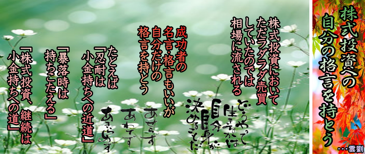 *考察論 決算短信で将来に有望とみられる中小型株を中心に隅々まで調べ上げて投資を実行する手法。億万長者の師匠・片山さんの投資法は簡単なようでまねができない。私などは配当が良い・優待が良い・総合利回りが良い、会社が安定しているから、今が株価が安いから買いかなと投資をしている平凡な投資法なのである。彼が個人投資家なら私は、正に人の影に隠れているゴミ投資家である。 2021-12-11・・・日経より ◆名言に学ぶ投資の奥義 「投資にフリーランチはない」は心すべき格言だ。無料のランチはないように、投資で成功するには何らかの負担が避けられないからだ。証券市場は株式など高リスクの商品の収益率は高く、国債など低リスクの商品は収益率が低いハイリスク・ハイリターンの世界である。つまり、高収益を望むにはリスクという厄介者と付き合わざるを得ない。属し、リスクがないのに高収益だとうたうものがあれば、間違いなく眉唾ものである。 米証券取引委員会(SEC)のホームページは、「株式投資は三振の多いホームランバッターです」と国民に呼びかける。大型優良株へ投資した場合でも、3年に1年くらいはマイナスを覚悟する必要がある。つまり、年によってマイナスでも、長期勝負に徹すれば株式市場の高い投資収益を享受できると説く。「卵を1つのかごに盛るな」も古くからの格言だ。かごを落としたときでも卵を全滅から守るには、幾つかのかごに分けて運べばよい。投資の世界も同様に株式、債券、国内投信、外国投信など複数の資産クラスに分散投資をすれば、リスクの軽減が可能だ。投資対象をこれぞと思う銘柄に絞り込みたい気持ちを抑えこむことが肝心だ。 投信を選ぶ際に、過去の成績の良しあしで判断することが多い。ここも一歩立ち止まって考えることが肝心だ。「過去のパフォーマンスは将来を保証しない」ことも、傾聴すべき先人の言葉である。SECのホームページも、「投信、過去のパフォーマンス」と属し、「過去の成績を根拠にした投信選びは危うい」と訴えている。そもそも証券投資は、保有する証券の価値が上昇するのを長いタイムスパンで待つことが王道だ。 相場の動きを追いかけ、短期的な売買を繰り返して利益を稼ぐ方法では長続きは難しい。伝説の経済学者ポール・サミュエルソン氏は、「投資の道は油絵の絵の具が乾くのを待つのや植物が育つのをただ見守るような、刺激がない退屈なものだ」と述べている。証券投資には特別なノウハウや情報が不可欠だと思いがちだが、語り継がれてきた投資の名言は分かりやすくシンプルだ。足元の投資行動が先人の教えにかなっているかどうか、いま一度チェックしたいものである。 (陰陽) |