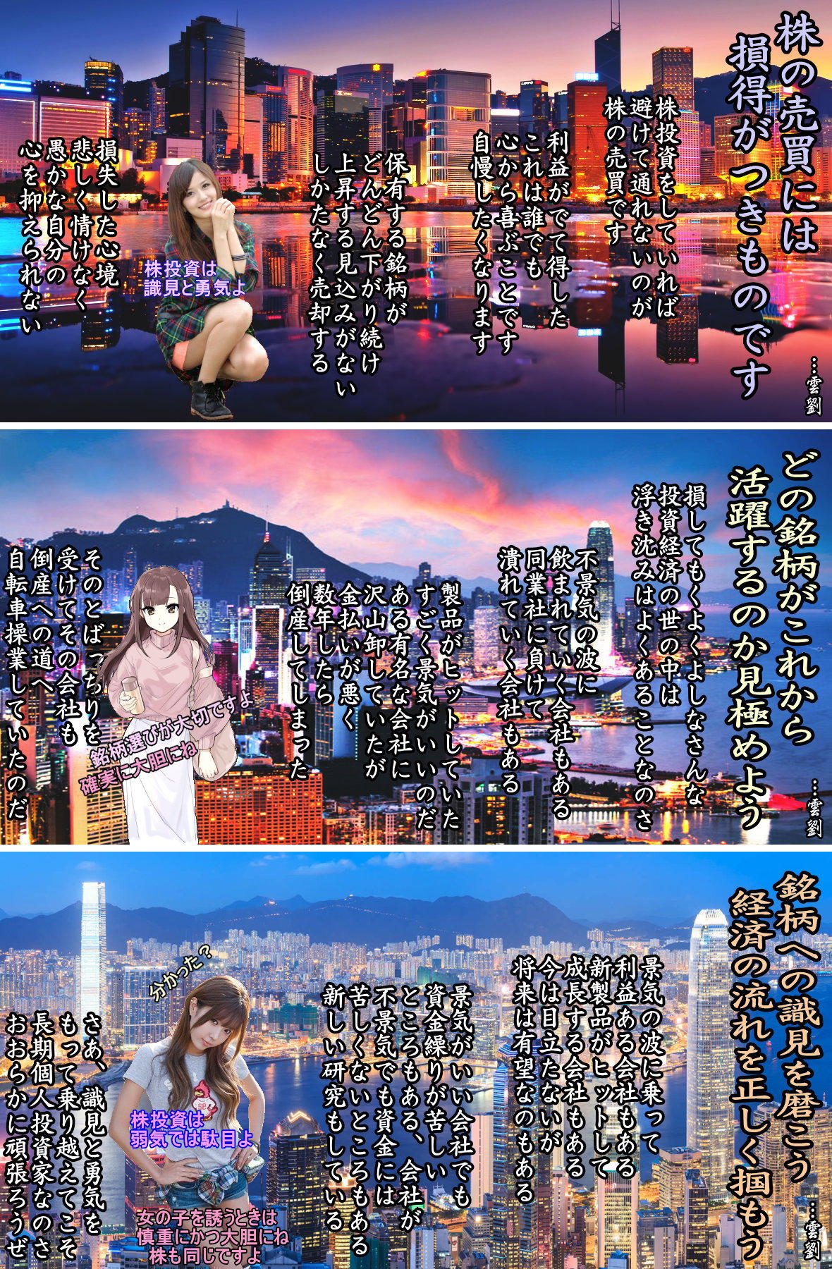 2001-02-01 ◆自分の人生を豊かにするには 若い時から自分の一生の人生をどうすれば幸せに過ごせるのか考えましょう。正しく思考してまとめて自分なりの肯定感を持ちましょう。そうすれば毎日の仕事や過ごし方や人生の理(ことわり・もっともな事。道理。条理)が分かってきます。そうなれば必然的に社畜人生なら投資を考えるようになってくるはずです。 そういうことに真剣になると自ずと「投資経済」の勉強が自然にするようになってきます。勉強をしようと思わないことは、自分の立場や生き様が分かっていないからです。ただし、自分に考察力・思考力に努力しても無理と感じる人は投資を控えるのが無難と思います。 無理は禁物です。そういう人は会社で真面目に働き、博打などは絶対にしないで給料・収入の以内で質素倹約して貯蓄して幸せを得ることです。