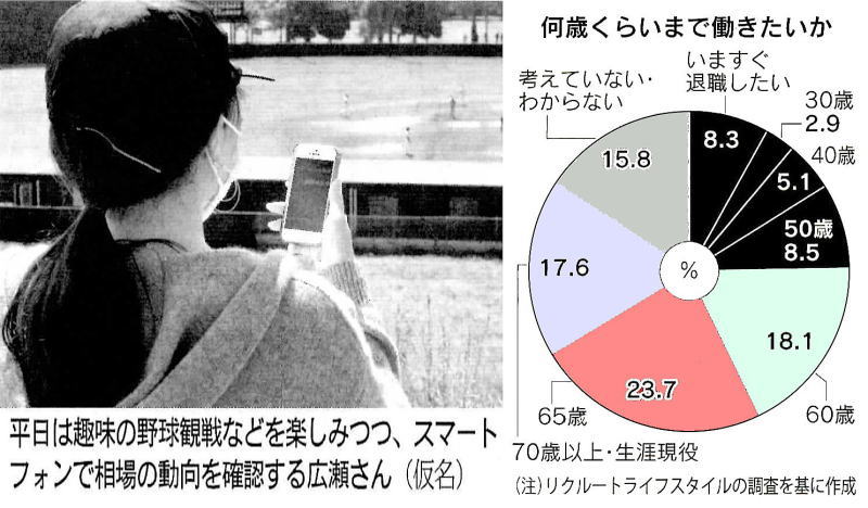 2021-05-03・・・日経より引用 ◆セミリタイアで夢探し、36歳、仕事見切り株で生活 立つ仕事」と書いた。「周りに憧れる大人がいれば違ったのかもしれない」父親は幼い頃に家を出た。母親は生活費を切り詰め、学習塾代に回して自分と妹を育てた。大学2年生の時、49歳の若さで他界した。思い浮かぶのは、世間体を気にし、険しい顔で家計簿をつける姿。「母は自分の人生を生きていたんだろうか」。幸せそうな表情を見たことがなかった。自分はどうか。「いい会社に行きなさい」。母親の教えに従い、就職活動に臨んだ。「システムエンジニア(SE)なら色々な業界をのぞける」。企業説明会で聞いた言葉に漠然と引かれ、有名システム会社のグループ企業に入社した。500万円の年収に不満はなかった。ただ、夜通しデスクにへばりつく日もあり、お金を使う暇すらなかった。ノルマを前に「客にウソをつけ」と言い放つ上司。 反発すれば「大人になりなよ」といさめる同僚。困僚(こんばい)の身で「何のために働いているのか」と思った。気づけば30代半ばで女性幹部のキャリアも見えた。だが、上司のようにはなりたくない。会社頼みの人生に限界を感じた。思い悩んだ時、インターネットでセミリタイアを知った。若いうちから資産形成を進め「経済的自立と早期退職(FIRE)」を志向する生き方が国内外で広がっているらしい。同年代のブログを見ると、数千万円を元手に資産運用だけで生活する人もいた。母親ゆずりの倹約家で物欲はない。貯蓄と相続した口座の額は5千万円近かった。「ぜいたくをしなければ、生涯働かなくてもやっていけそうだ」。FX(外国為挙証拠金)取引、不動産投資信託、米国株……。投資テクニックを純資産1億円を超す「億り人」らの交流会などで学んだ。 新型コロナウイルス禍の中でも株式市場は活況で、会社員時代の月給より高い利益を得る月もある。ゲーム感覚で増える資産。コロナ禍でも満員電車で会社に向かう人々を見ると、以前の暮らしには戻れないと感じる。激務にささげた過去の時間を取り返すように、趣味のプロ野球観戦をしたり、近場へ日帰りで旅行したり。ただ、サラリーマン時代に憧れた「ドラゴンクエスト」は1カ月で飽きた。「人生の主導権を取り戻した」と感じる一方で、漠然とした焦燥感も消えない。ひいきの球団に同い年のベテラン選手がいる。戦力外になっても、ポジションを変えられても引退しない。「普通なら腐るはずなのに」。自分が没頭できるものはどこにあるのだろうか。「人生の迷走は続く」。漂う思いをツイッターでつぶやいた。(文:佐藤渾一郎 写真:井上容)